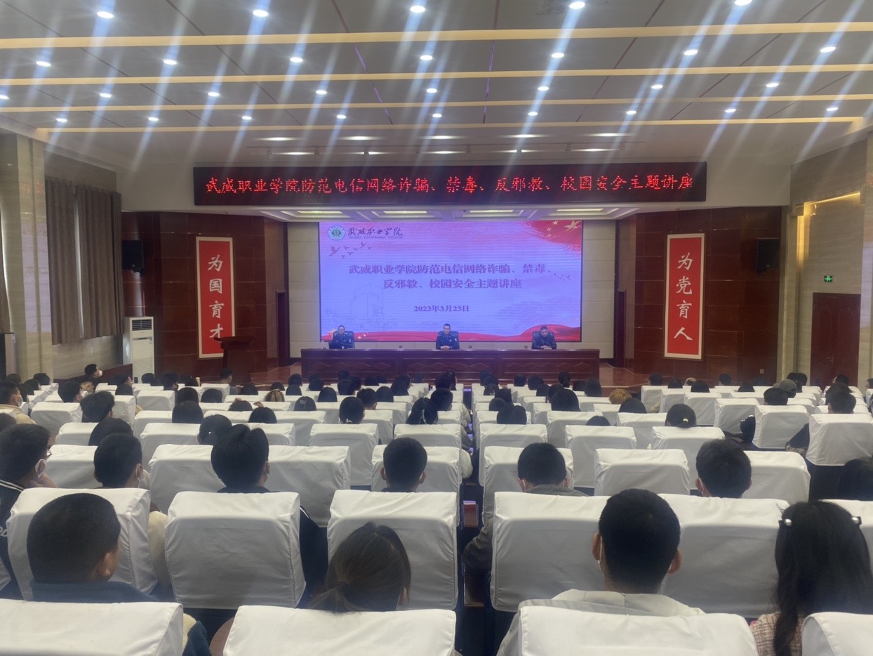 為進(jìn)一步加強(qiáng)防范電信網(wǎng)絡(luò)詐騙、禁毒、反邪教、校園安全宣傳教育工作,提高廣大師生防范意識,3月24日下午,學(xué)校安全保衛(wèi)處邀請涼州區(qū)西關(guān)派出所民警為學(xué)校師生開展防范電信網(wǎng)絡(luò)詐騙、禁毒、反邪教、校園安全主題講座。講座由學(xué)校安全保衛(wèi)處負(fù)責(zé)人李欣主持,西關(guān)派出所副所長藺福鵬參加講座。