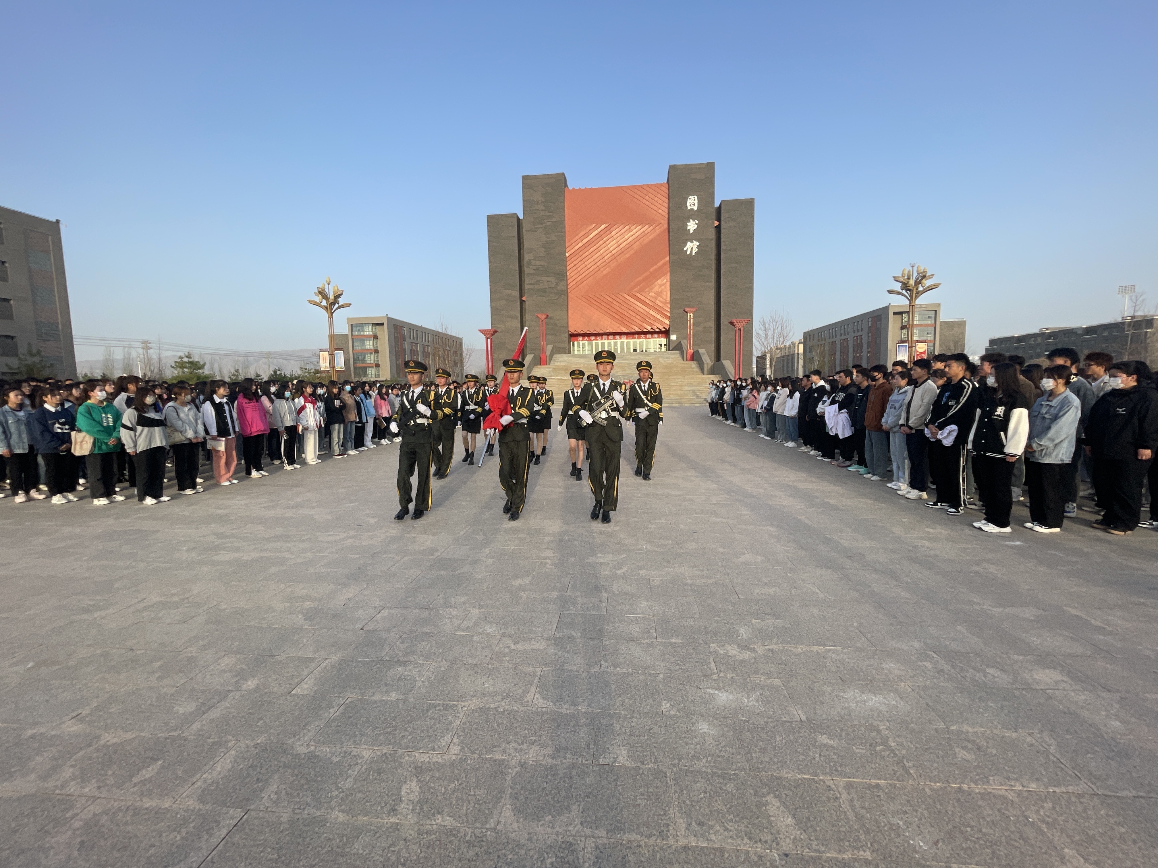 4月17日上午,醫(yī)學(xué)技術(shù)學(xué)院在學(xué)校圖書館東廣場(chǎng)舉行升國(guó)旗儀式,全體師生參加。