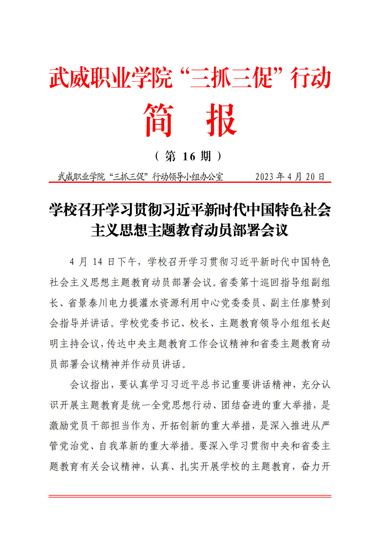 簡(jiǎn)報(bào)第16期:學(xué)校召開(kāi)學(xué)習(xí)貫徹習(xí)近平新時(shí)代中國(guó)特色 社會(huì)主義思想主題教育動(dòng)員部署會(huì)議