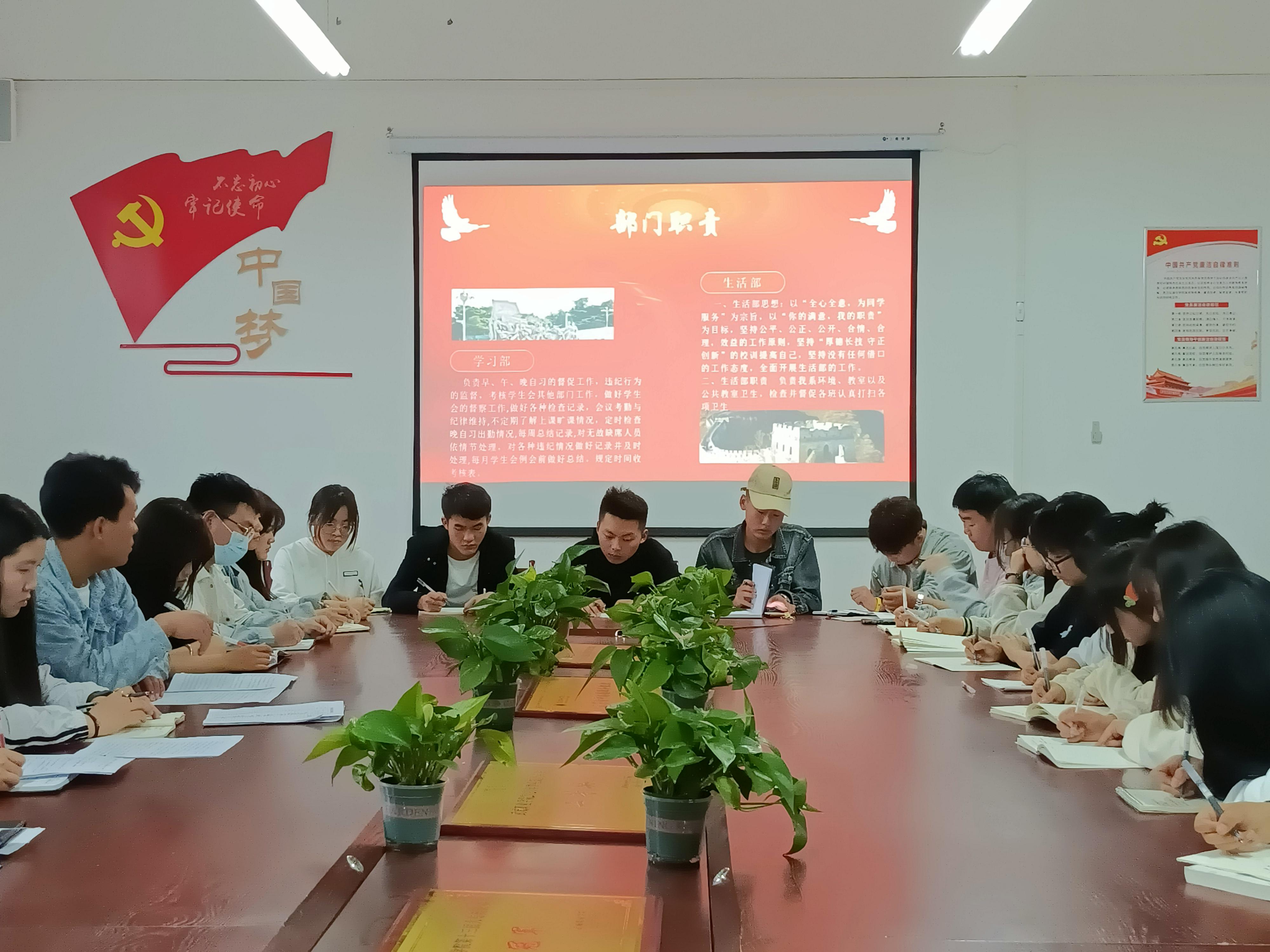 ? ? ? ? 乘勢(shì)而上謀發(fā)展,凝聚共識(shí)向未來(lái),為了新學(xué)期的工作更上一個(gè)臺(tái)階,藥學(xué)院于2023年5月29日晚7:30,在尚德樓411組織召開團(tuán)學(xué)干部作風(fēng)建設(shè)例會(huì)。會(huì)議由校學(xué)生會(huì)主席白國(guó)強(qiáng),藥學(xué)院主席團(tuán)李停強(qiáng),尚寶萍,楊洋,各部部長(zhǎng)及22級(jí)新學(xué)生會(huì)部分成員共同參加。此次例會(huì)的主要目的是:加強(qiáng)學(xué)院和各分院的緊密溝通,更好地為院系服務(wù),也希望各分院給予院學(xué)生會(huì)的工作以意見(jiàn)與建議。