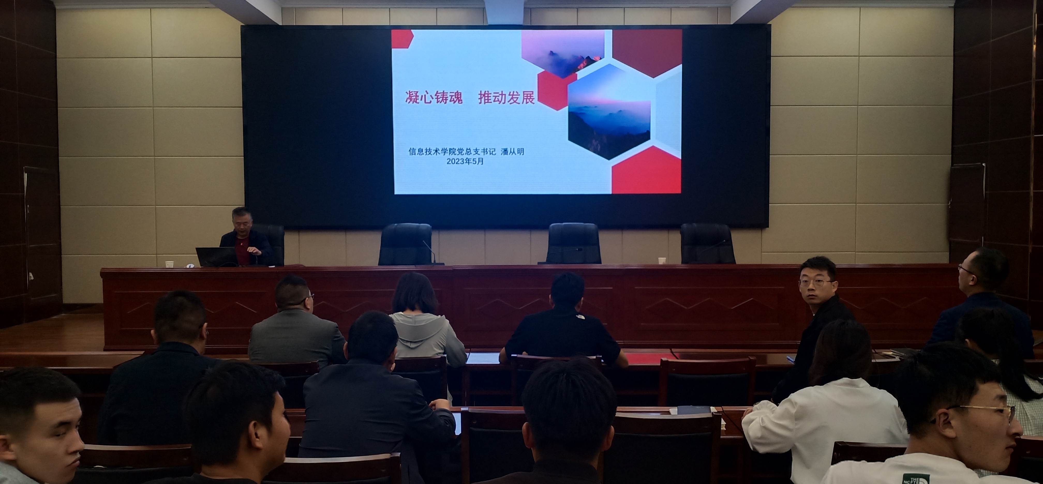 5月25日,信息技術(shù)學(xué)院黨總支開(kāi)展學(xué)習(xí)貫徹習(xí)近平新時(shí)代中國(guó)特色社會(huì)主義思想主題教育專(zhuān)題黨課。黨總支書(shū)記潘從明以《凝心鑄魂 推動(dòng)發(fā)展》為題講授主題教育專(zhuān)題黨課,全體師生黨員參加會(huì)議。