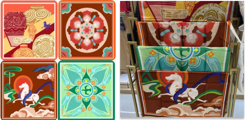 我校師生依托授權(quán)文物紋樣設(shè)計(jì)的“蓮花彩磚”“絢麗彩陶”“七彩天馬”“八鳥(niǎo)朝陽(yáng)”等文創(chuàng)作品,主題鮮明、形式多樣,充分展示了我校在文創(chuàng)產(chǎn)品開(kāi)發(fā)領(lǐng)域的專業(yè)能力。