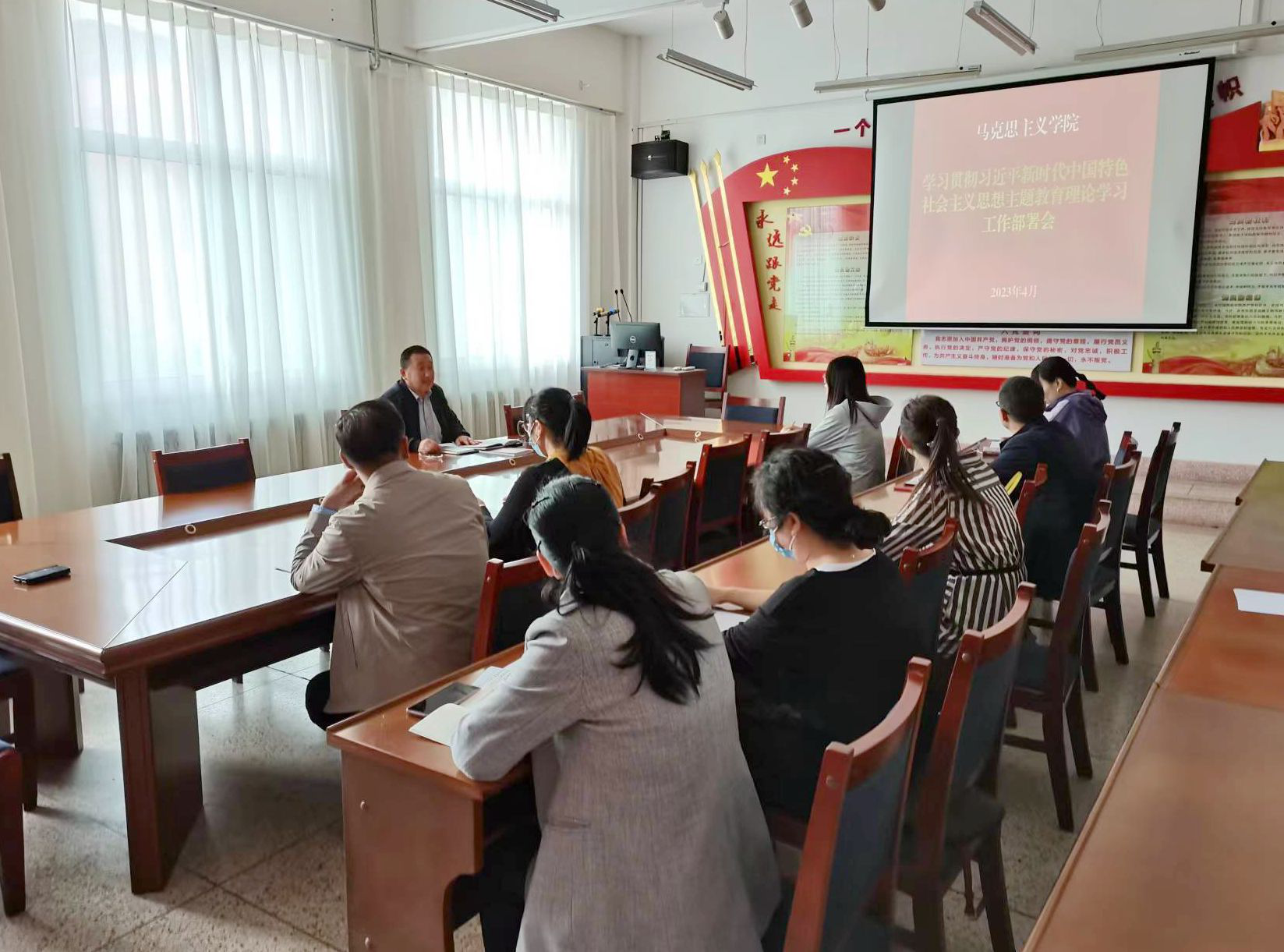 馬克思主義學(xué)院積極響應(yīng),迅速啟動(dòng),第一時(shí)間召開了主題教育動(dòng)員部署會(huì),對(duì)學(xué)院開展學(xué)習(xí)貫徹習(xí)近平新時(shí)代中國(guó)特色社會(huì)主義思想主題教育進(jìn)行安排部署,始終堅(jiān)持高標(biāo)準(zhǔn)、嚴(yán)要求,扎實(shí)開展學(xué)習(xí),制定集體學(xué)習(xí)計(jì)劃表和個(gè)人自學(xué)表,明確學(xué)習(xí)內(nèi)容、時(shí)間安排、學(xué)習(xí)方式,組織領(lǐng)導(dǎo)等。以深入學(xué)習(xí)習(xí)近平新時(shí)代中國(guó)特色社會(huì)主義思想為主要內(nèi)容,以提升思政課教師政治能力為重點(diǎn),以深化黨員理論武裝為抓手,以全面提高教學(xué)能力為著力點(diǎn),引導(dǎo)黨員讀原著學(xué)原文悟原理,認(rèn)真研讀黨的二十大報(bào)告和黨章,學(xué)習(xí)《習(xí)近平著作選讀》《習(xí)近平新時(shí)代中國(guó)特色社會(huì)主義思想專題摘編》等指定學(xué)習(xí)材料,全面、系統(tǒng)、準(zhǔn)確領(lǐng)會(huì)和把握習(xí)近平新時(shí)代中國(guó)特色社會(huì)主義思想的科學(xué)體系、核心要義、實(shí)踐要求。