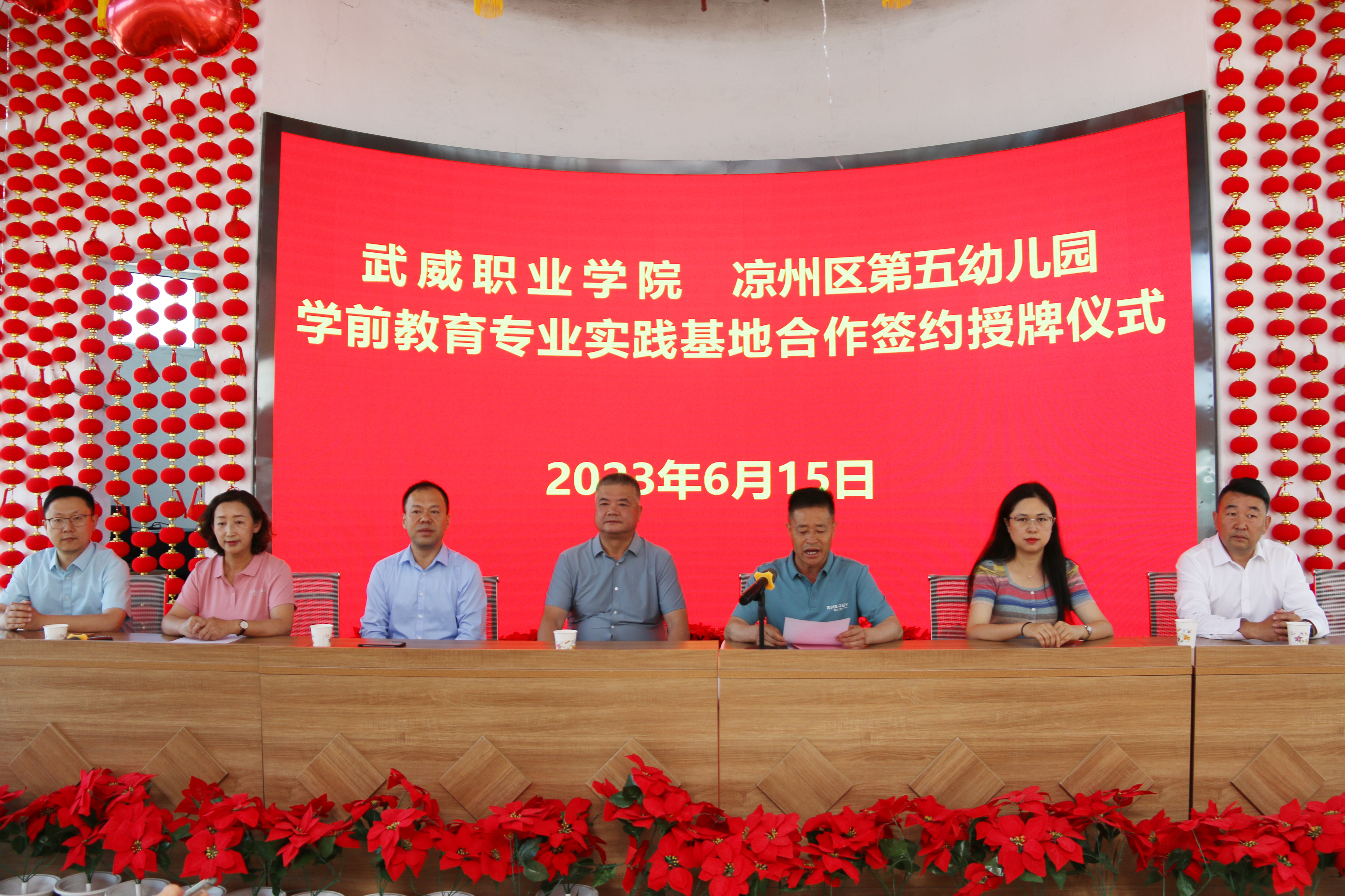 6月15日,武威職業(yè)學院學前教育專業(yè)實踐基地授牌儀式分別在武威市第二實驗幼兒園、涼州區(qū)第五幼兒園舉行。學校黨委委員、副校長王守云,武威市第二實驗幼兒園園長羅亞莉,涼州區(qū)第五幼兒園園長張俊山出席授牌儀式。藝術(shù)與教育學院教師代表,市區(qū)幼兒園領導班子成員及部分教師參加授牌儀式。