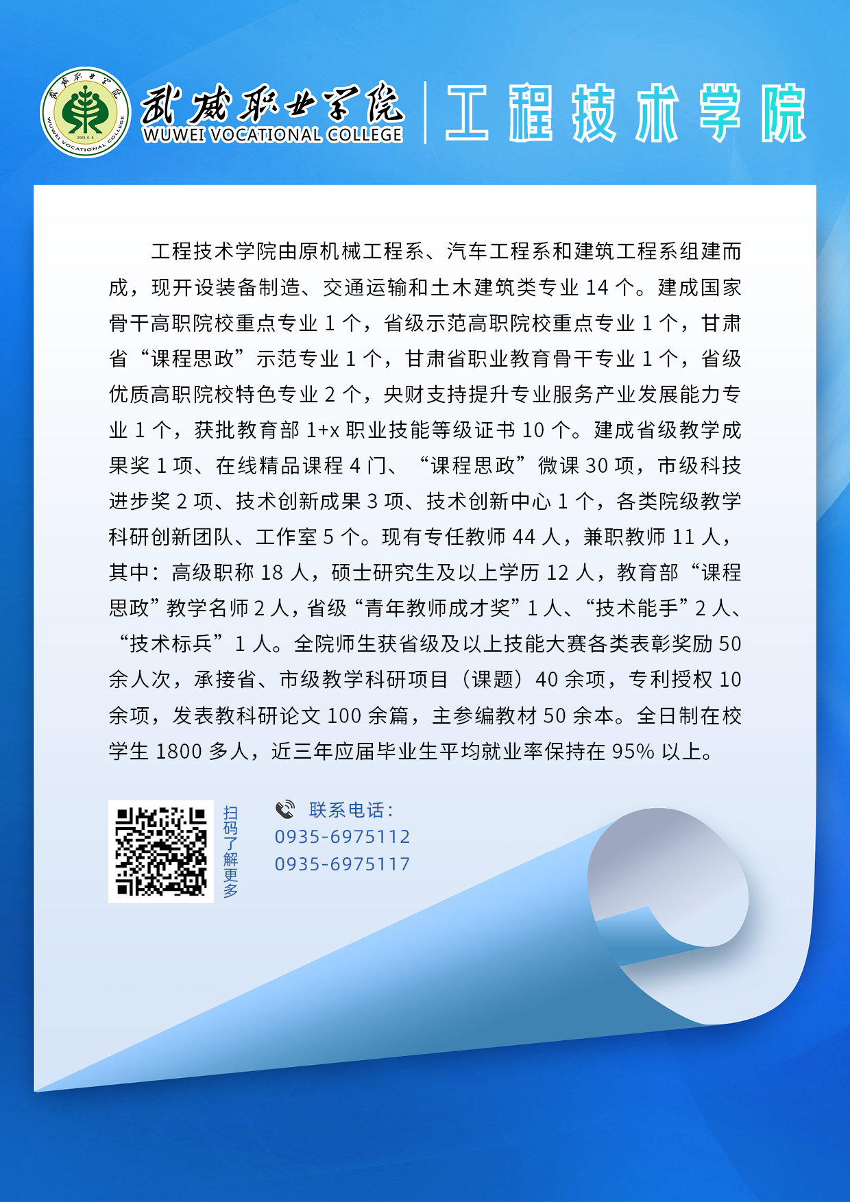 武威職業(yè)學(xué)院二級學(xué)院專業(yè)簡介丨工程技術(shù)學(xué)院