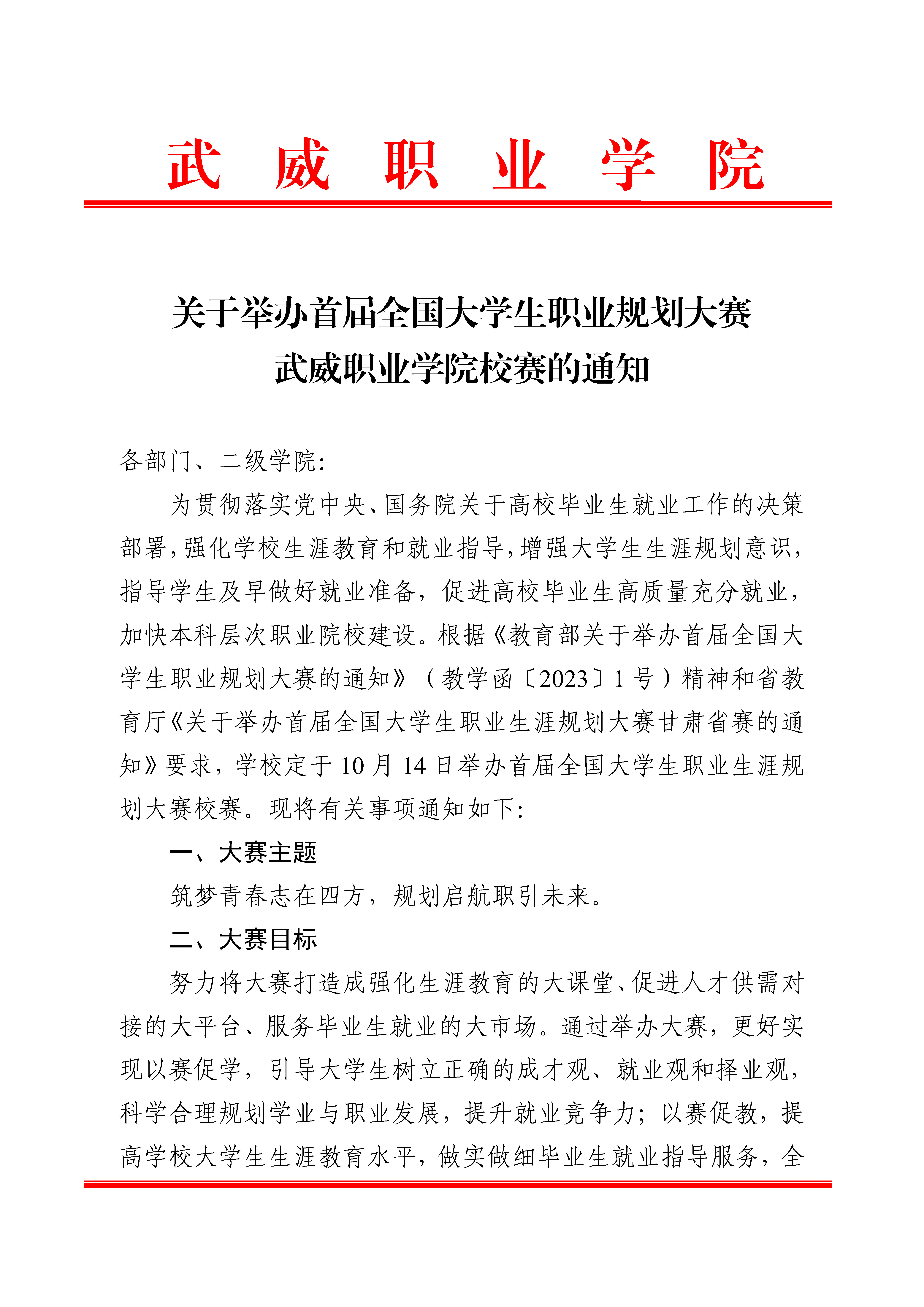 關(guān)于舉辦首屆全國大學(xué)生職業(yè)規(guī)劃大賽 武威職業(yè)學(xué)院校賽的通知
