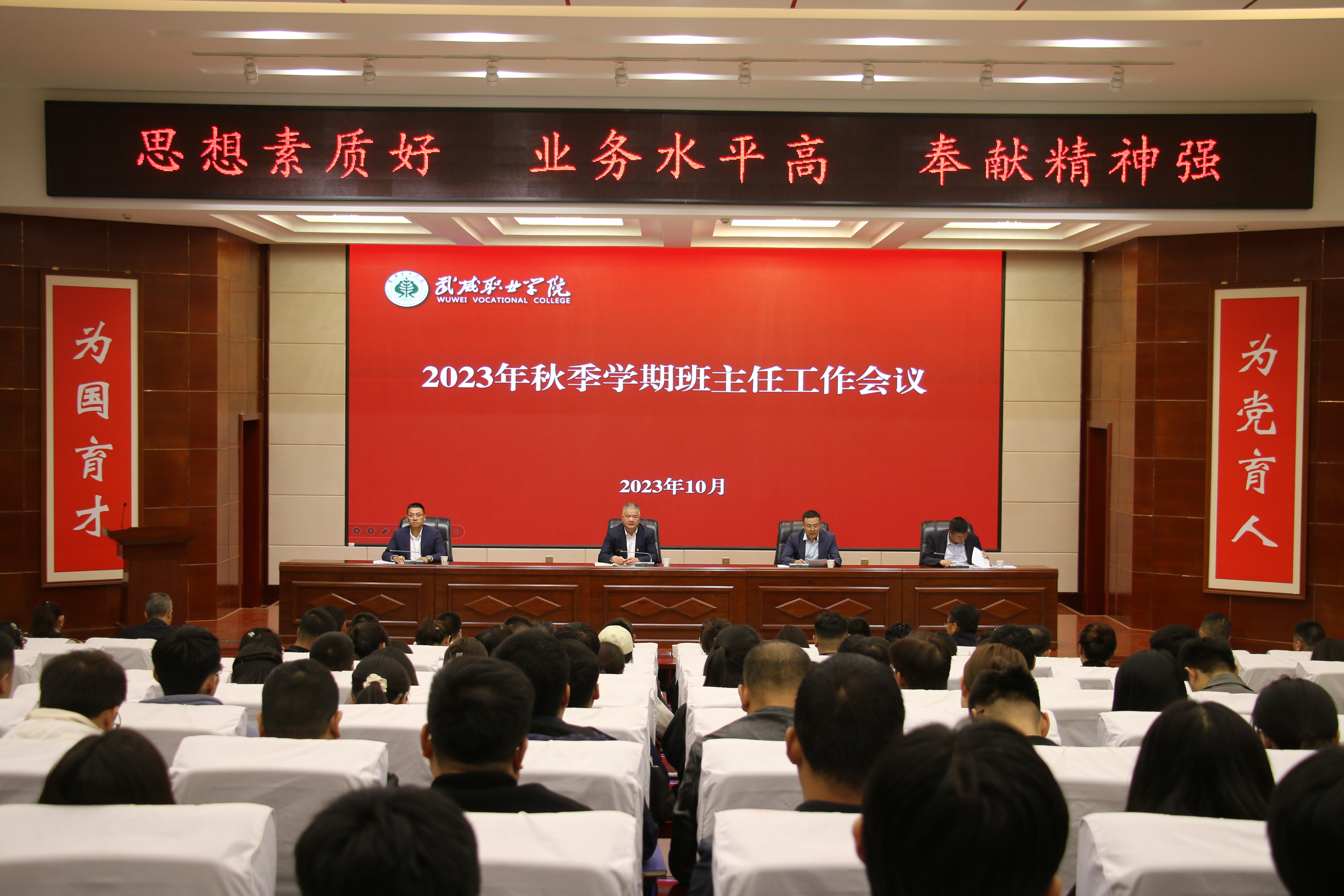 10月10日下午,學校2023年秋季學期班主任工作會議在菁英廳召開。黨委委員、副校長王守云出席并講話,會議由學生工作處負責人、校團委書記高鵬堂主持。