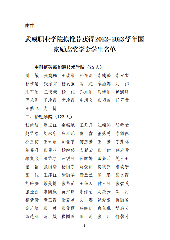 武威職業(yè)學(xué)院關(guān)于2022-2023學(xué)年國(guó)家勵(lì)志獎(jiǎng)學(xué)金候選人的公示