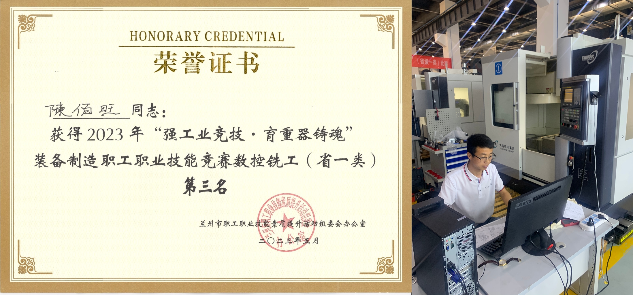 為深入學(xué)習(xí)貫徹黨的二十大精神,聚焦實(shí)施強(qiáng)工業(yè)、強(qiáng)科技、強(qiáng)省會(huì)、強(qiáng)縣城“四強(qiáng)行動(dòng)”,著力打造高技能人才隊(duì)伍,2023年6月,由甘肅省總工會(huì)主辦,蘭州市總工會(huì)和蘭石集團(tuán)承辦的2023年全省職工職業(yè)技能競(jìng)賽“數(shù)控銑”賽項(xiàng)省級(jí)一類決賽在蘭州新區(qū)舉辦,來自全省22個(gè)企事業(yè)單位46名職工選手參賽。工會(huì)聯(lián)合工程技術(shù)學(xué)院積極組隊(duì)參賽,代表武威市參加了本次比賽。經(jīng)過三天的競(jìng)技角逐,我校教師陳佰旺取得二等獎(jiǎng)(第三名)的優(yōu)異成績(jī),獲得了“甘肅省技術(shù)能手”和“甘肅省技術(shù)標(biāo)兵”榮譽(yù)稱號(hào)。