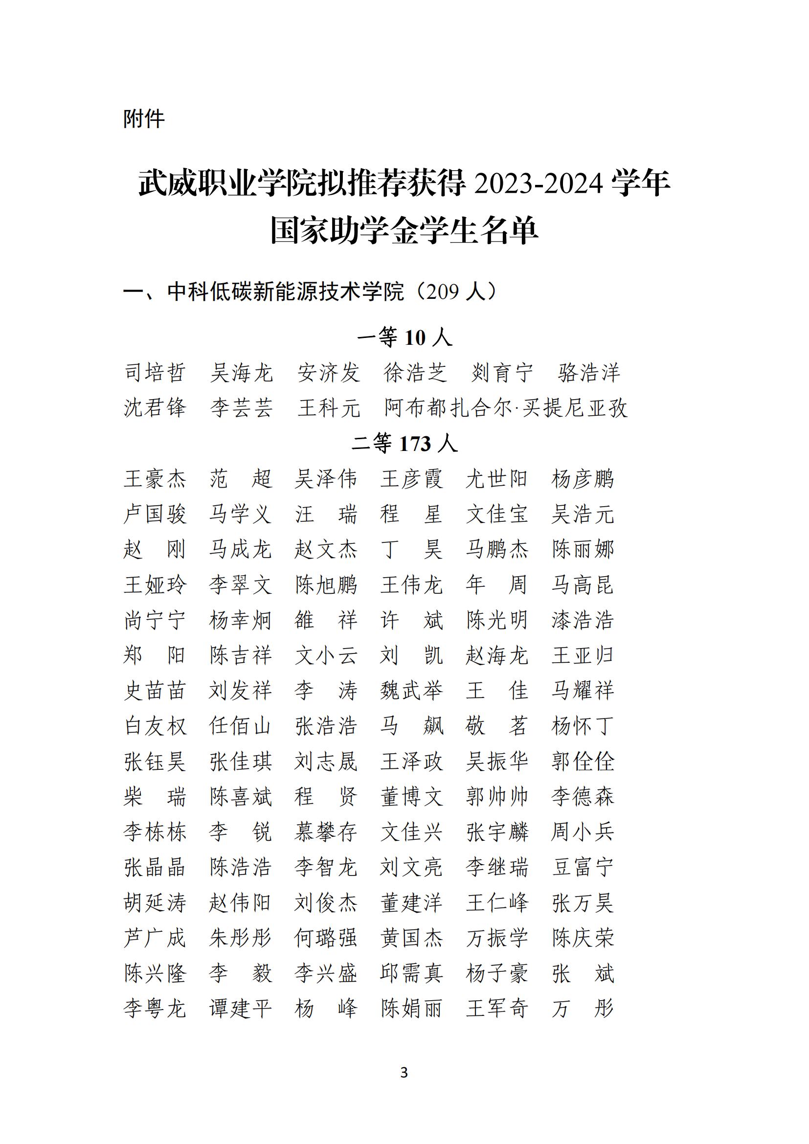 武威職業(yè)學(xué)院關(guān)于2023-2024學(xué)年國家助學(xué)金評選結(jié)果的公示