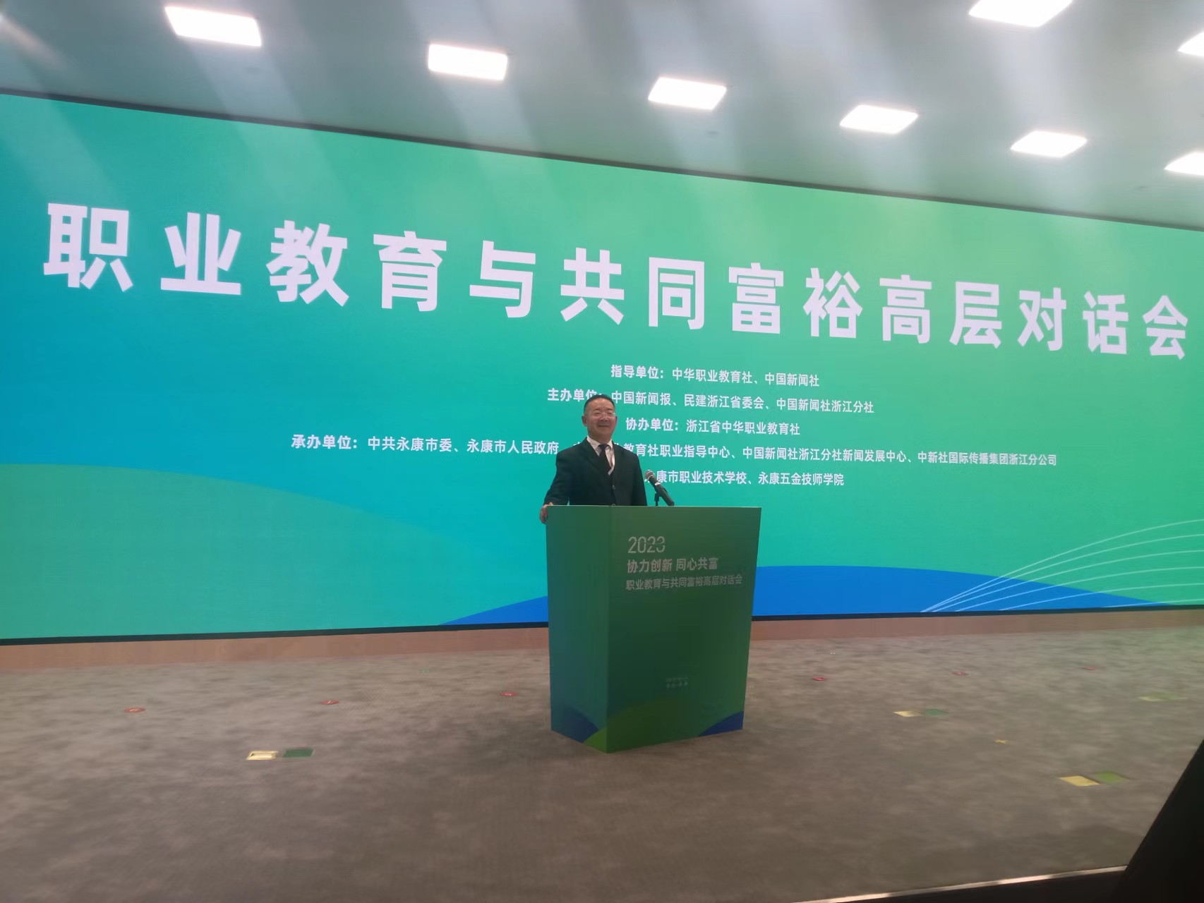 10月26日至27日,職業(yè)教育與共同富裕高層對(duì)話會(huì)在浙江金華永康市舉行。會(huì)議以“協(xié)力創(chuàng)新 同心共富”為主題,由中華職業(yè)教育社、中國(guó)新聞社指導(dǎo),中國(guó)新聞報(bào)、民建浙江省委會(huì)和中國(guó)新聞社浙江分社主辦,浙江省中華職業(yè)教育社協(xié)辦。全國(guó)人大常委會(huì)副委員長(zhǎng)、中華職業(yè)教育社理事長(zhǎng)郝明金,浙江省政協(xié)副主席、浙江省中華職業(yè)教育社主任陳小平出席會(huì)議,國(guó)內(nèi)職業(yè)教育領(lǐng)域?qū)<?、學(xué)者及職業(yè)院校、行業(yè)協(xié)會(huì)、學(xué)術(shù)機(jī)構(gòu)代表等約300人圍繞東西協(xié)作、產(chǎn)教融合等議題展開(kāi)深入探討。