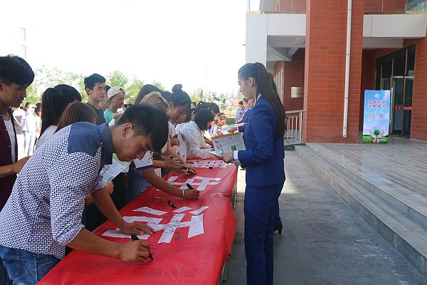 活動(dòng)中,王主瑞介紹了我國(guó)禁毒工作的基本情況和面臨的嚴(yán)峻形勢(shì),強(qiáng)調(diào)了青年毒品預(yù)防的重要性。學(xué)生代表王波波宣讀了禁毒倡議書,青年志愿者發(fā)放禁毒宣傳材料2000余份,在場(chǎng)師生在“青春無毒·健康生活”主題條幅上進(jìn)行承諾簽名并觀看了毒品預(yù)防知識(shí)宣傳展板。