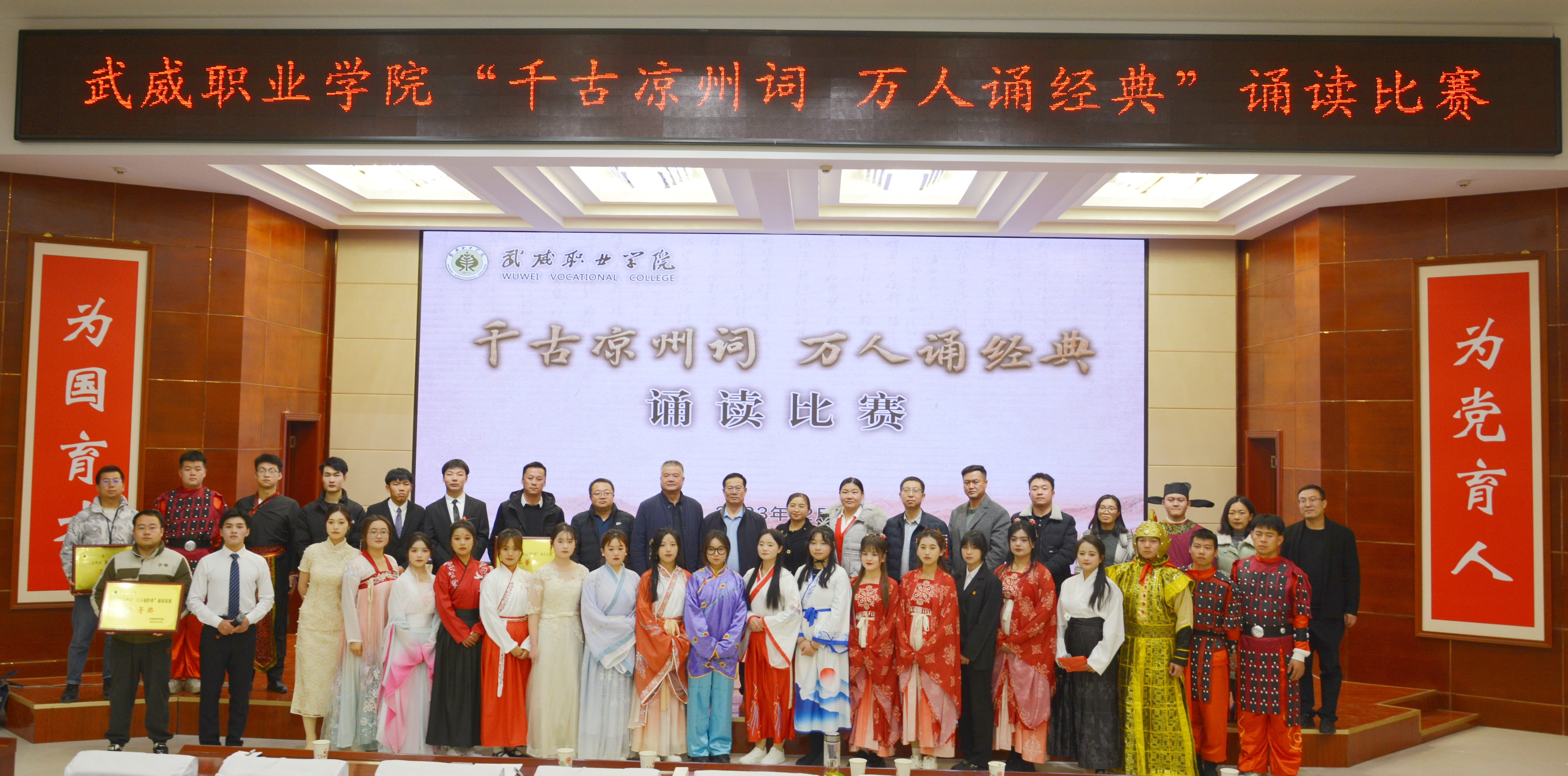 學(xué)校堅(jiān)持“以文育人、以文化人”,圍繞“傳承涼州文脈,賦能文化自信”主題,以中華優(yōu)秀傳統(tǒng)文化為底蘊(yùn)基石,以涼州文化為重要依托,打造出一系列根植地域文化的校園特色文化品牌活動,多舉措豐富文化育人內(nèi)涵,推動文化育人提質(zhì)增效,激勵武職學(xué)子凝心聚力續(xù)寫涼州豪放詞,篤定前行再譜武職新華章,全力為學(xué)校申辦武威職業(yè)技術(shù)大學(xué)貢獻(xiàn)青春力量!