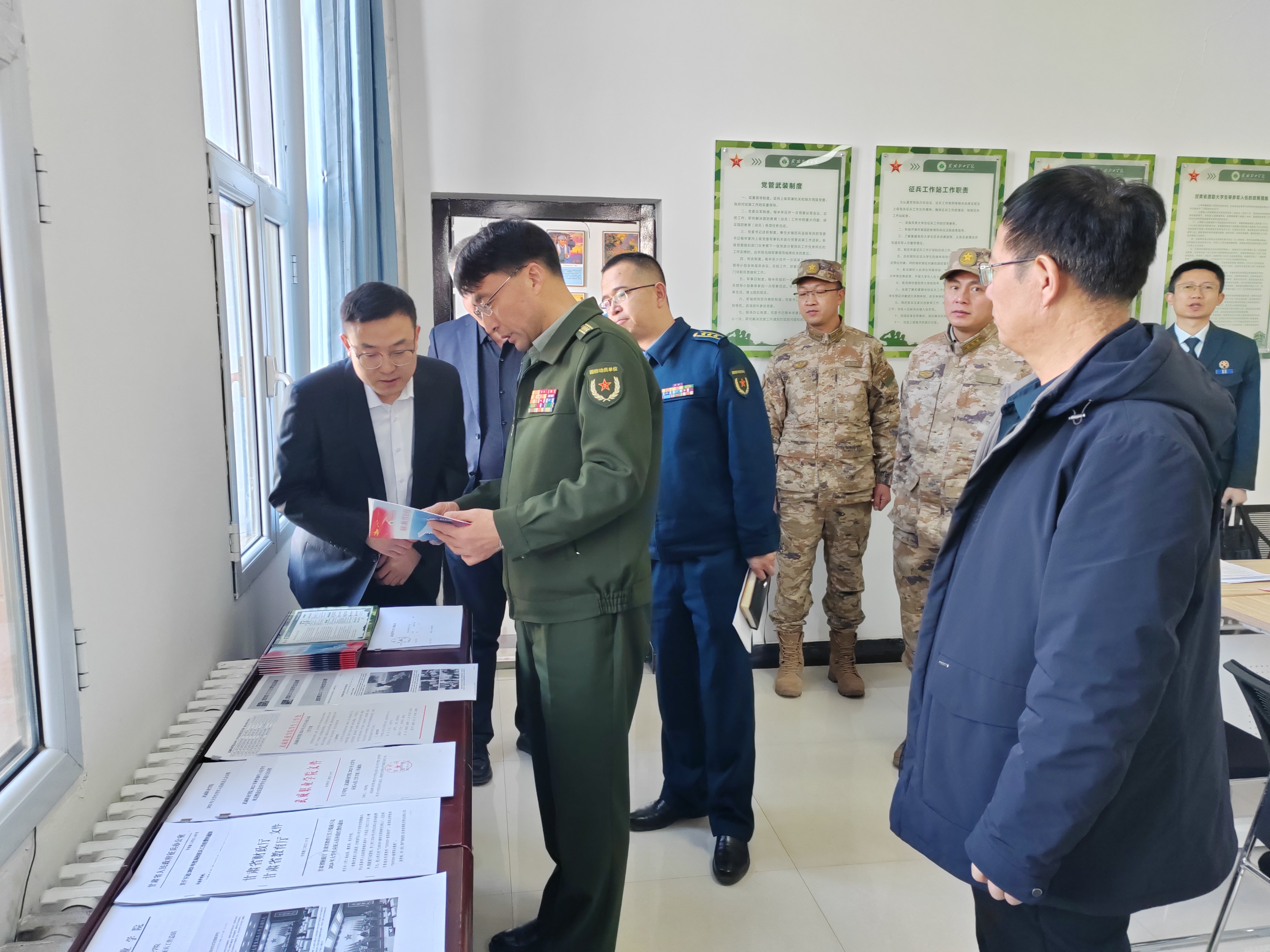 1月9日下午,武威市征兵領(lǐng)導(dǎo)小組副組長、軍分區(qū)大校司令員陳習(xí)友帶工作組一行5人,來我校調(diào)研征兵工作開展情況。校長、黨委副書記張開禮,黨委委員、副校長王守云陪同調(diào)研。