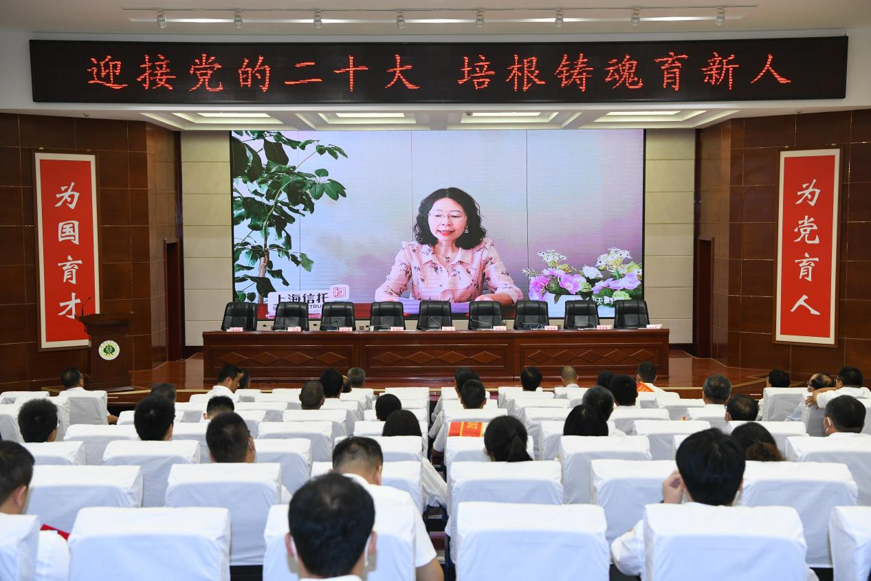 參會領(lǐng)導向獲得2022年“上善·低碳新能源獎教金”的獲獎人員頒發(fā)了證書?!吧仙啤さ吞夹履茉椽劷探稹笔巧虾H信托有限公司為獎勵學校教師在推動綠色能源領(lǐng)域職業(yè)教育中作出的貢獻,在學校設(shè)立的捐贈資金。大會現(xiàn)場播放了上海國際信托有限公司張曉軍副總經(jīng)理講話視頻。