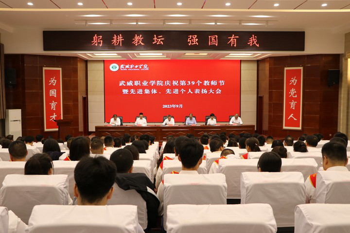 9月8日上午,在第39個(gè)教師節(jié)即將來(lái)臨之際,武威職業(yè)學(xué)院慶祝2023年教師節(jié)暨先進(jìn)集體和先進(jìn)個(gè)人表?yè)P(yáng)大會(huì)在菁英廳隆重舉行。學(xué)院黨委書(shū)記、校長(zhǎng)趙明主持會(huì)議并講話,在家領(lǐng)導(dǎo)班子成員出席會(huì)議,中層管理干部、受表?yè)P(yáng)的教師和師生代表參加會(huì)議。