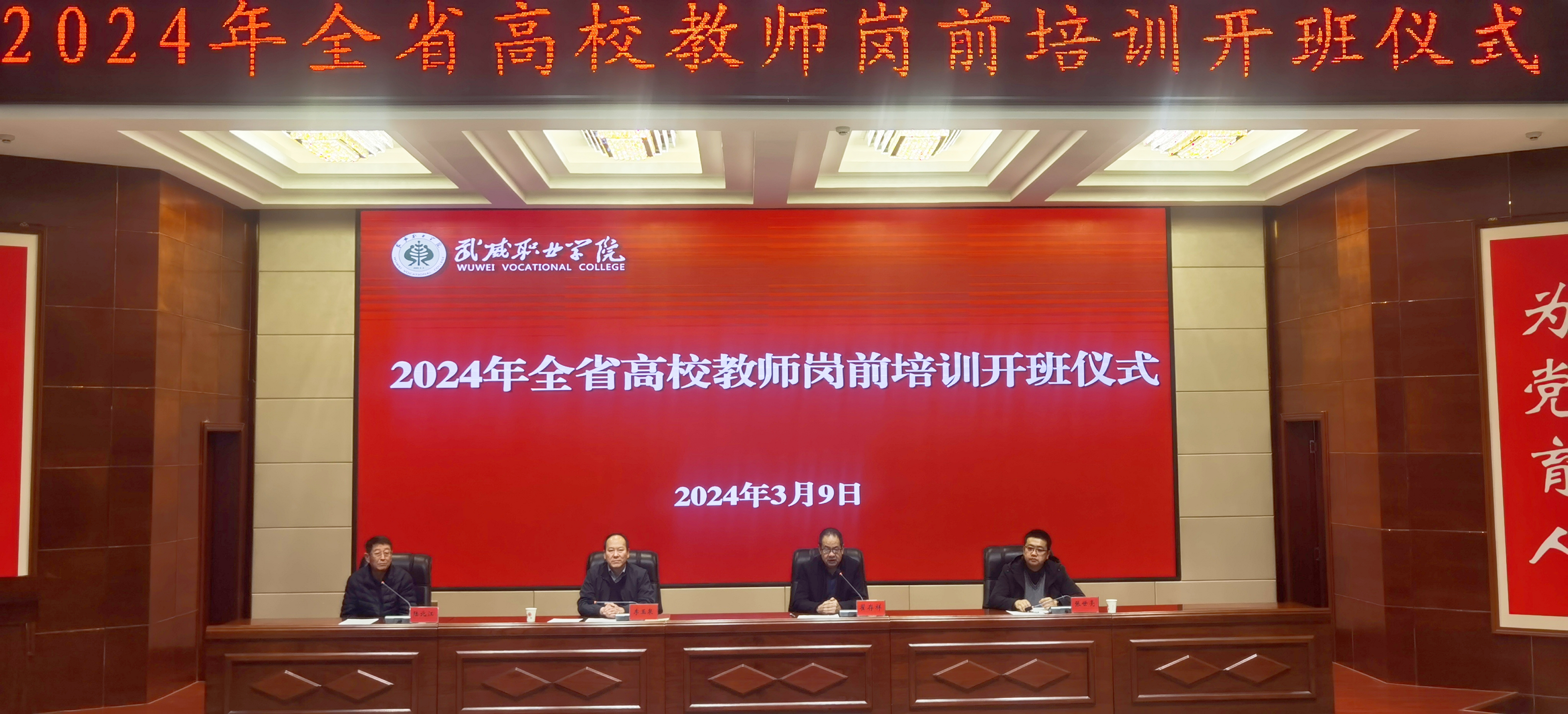 為引導(dǎo)廣大教師深刻領(lǐng)會(huì)教育家精神,牢記“為黨育人、為國(guó)育才”初心使命,樹立躬耕教壇信念,培養(yǎng)高素質(zhì)教師隊(duì)伍,3月9日上午,我校2024年上半年兼職教師崗前培訓(xùn)教學(xué)班開班儀式暨第一階段集中培訓(xùn)在學(xué)生發(fā)展中心菁英廳舉行。西北師范大學(xué)繼續(xù)教育學(xué)院副院長(zhǎng)李玉泉、武威職業(yè)學(xué)院黨委副書記翟存祥、教務(wù)處負(fù)責(zé)人張世亮出席會(huì)議并講話,142名兼職教師參加開班儀式。儀式由甘肅省高等學(xué)校師資培訓(xùn)中心副主任陸北江主持。開班儀式上,張世亮介紹了本次兼職教師崗前培訓(xùn)基本情況,對(duì)培訓(xùn)工作作了部署安排。