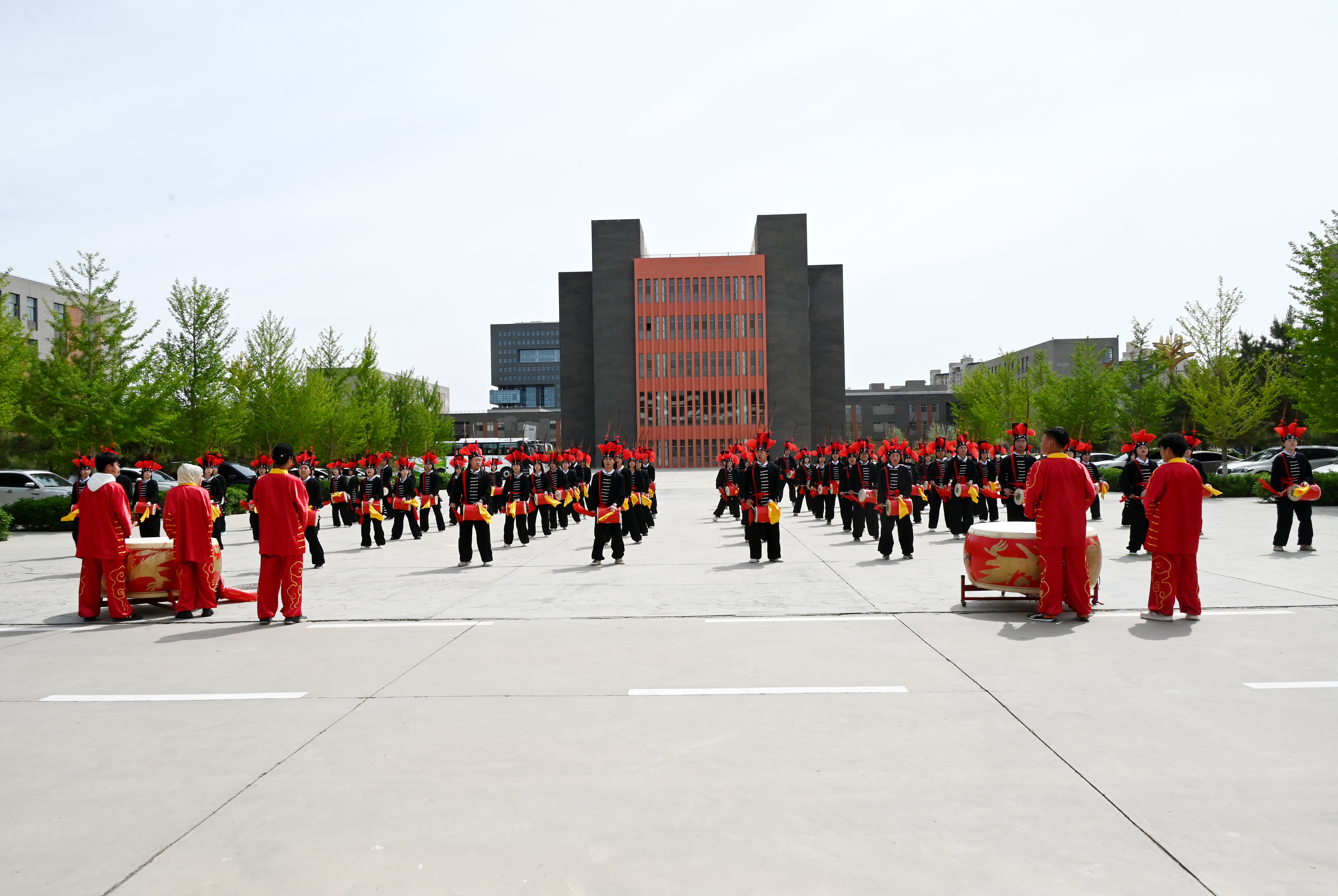 展演結(jié)束后,各參演學校帶隊老師、留學生觀看了學校攻鼓子藝術(shù)團表演的非物質(zhì)文化遺產(chǎn)攻鼓子并參觀了學校。田迎春陪同觀看參觀。