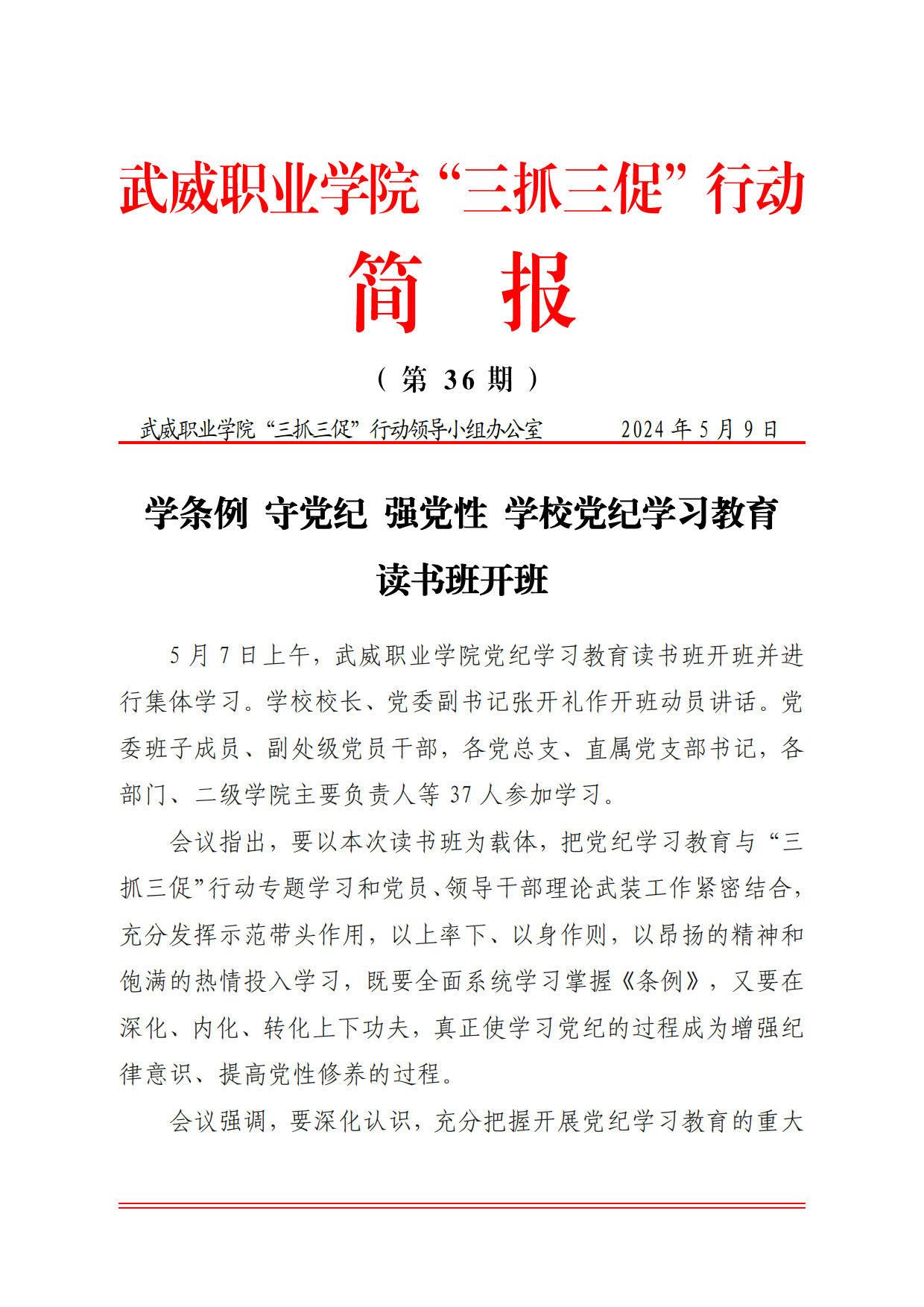 簡報第36期:學(xué)條例 守黨紀(jì) 強(qiáng)黨性 學(xué)校黨紀(jì)學(xué)…