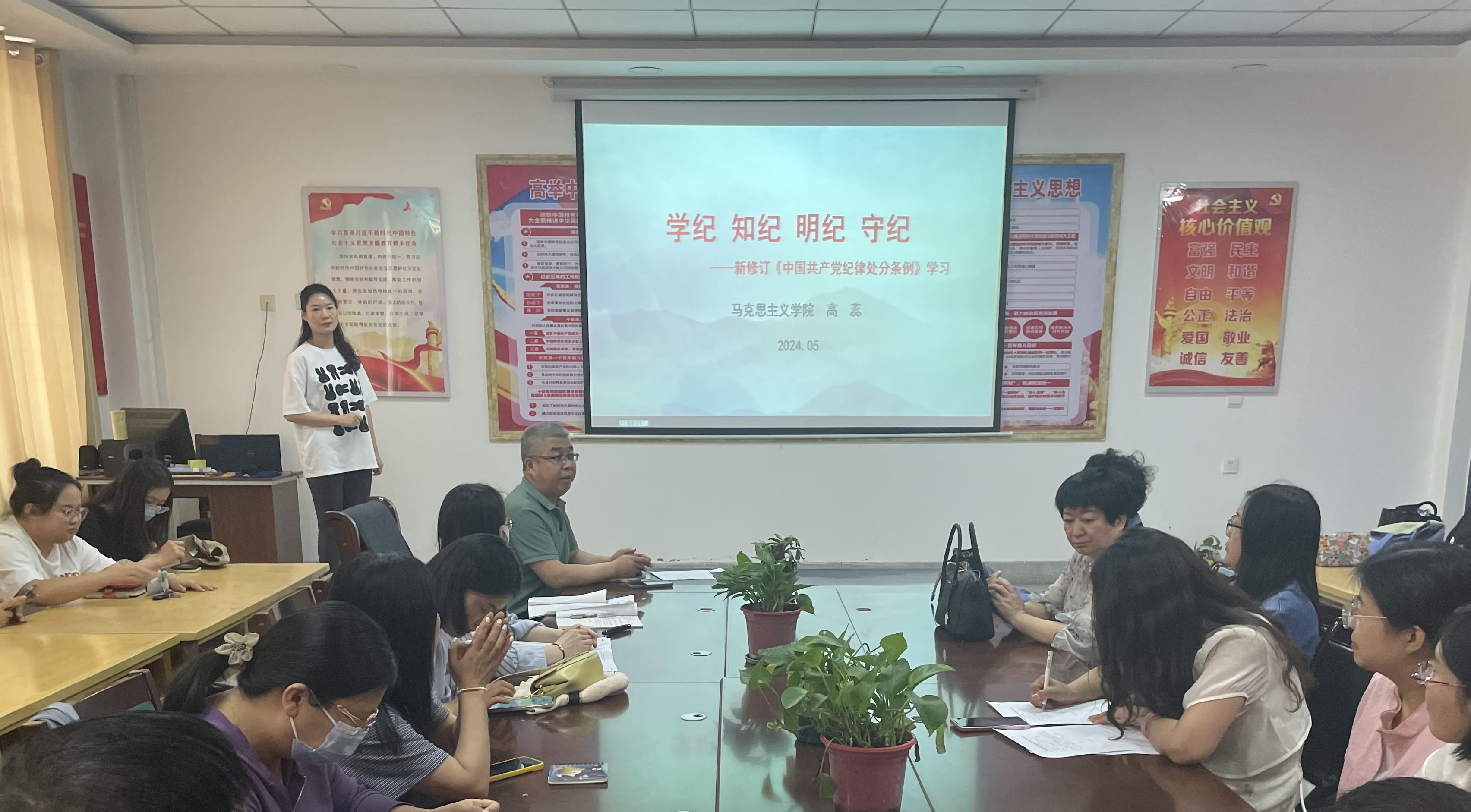為扎實(shí)推動(dòng)護(hù)理學(xué)院黨紀(jì)學(xué)習(xí)教育走深走實(shí),進(jìn)一步嚴(yán)明政治紀(jì)律和政治規(guī)矩,5月17日,學(xué)院邀請(qǐng)學(xué)校宣講組成員、馬克思主義學(xué)院副教授高蕊對(duì)《中國(guó)共產(chǎn)黨紀(jì)律處分條例》(以下簡(jiǎn)稱《條例》)進(jìn)行專題宣講解讀,學(xué)院黨總支書記張建輝主持宣講活動(dòng),全體黨員干部參加。