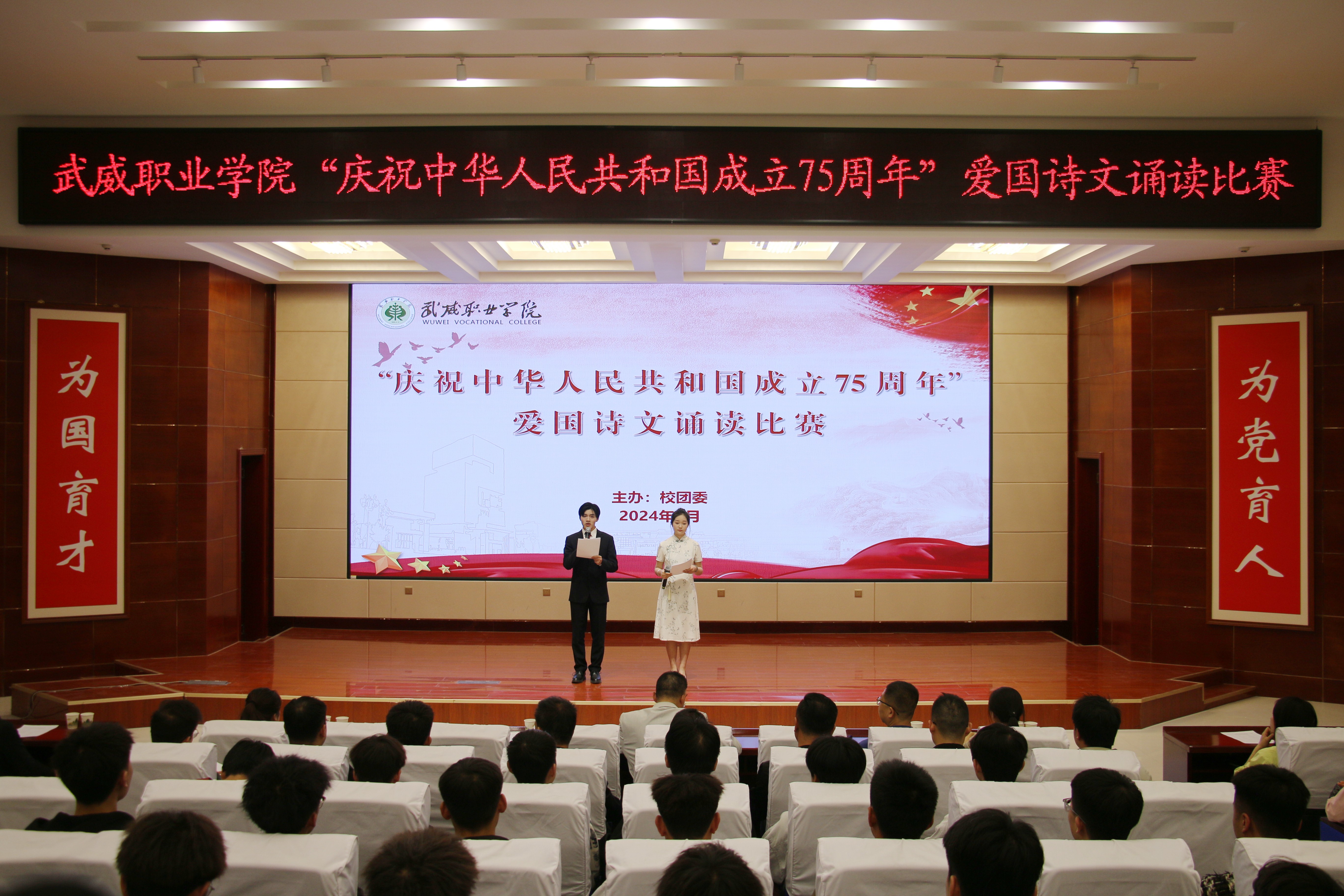 4月25日晚,學(xué)?!凹o(jì)念‘五四’運動105周年暨慶祝新中國成立75周年”愛國詩文誦讀比賽在菁英廳舉辦。黨委委員、副校長王守云出席活動,各二級學(xué)院團(tuán)委書記及學(xué)生代表220余人觀看比賽。