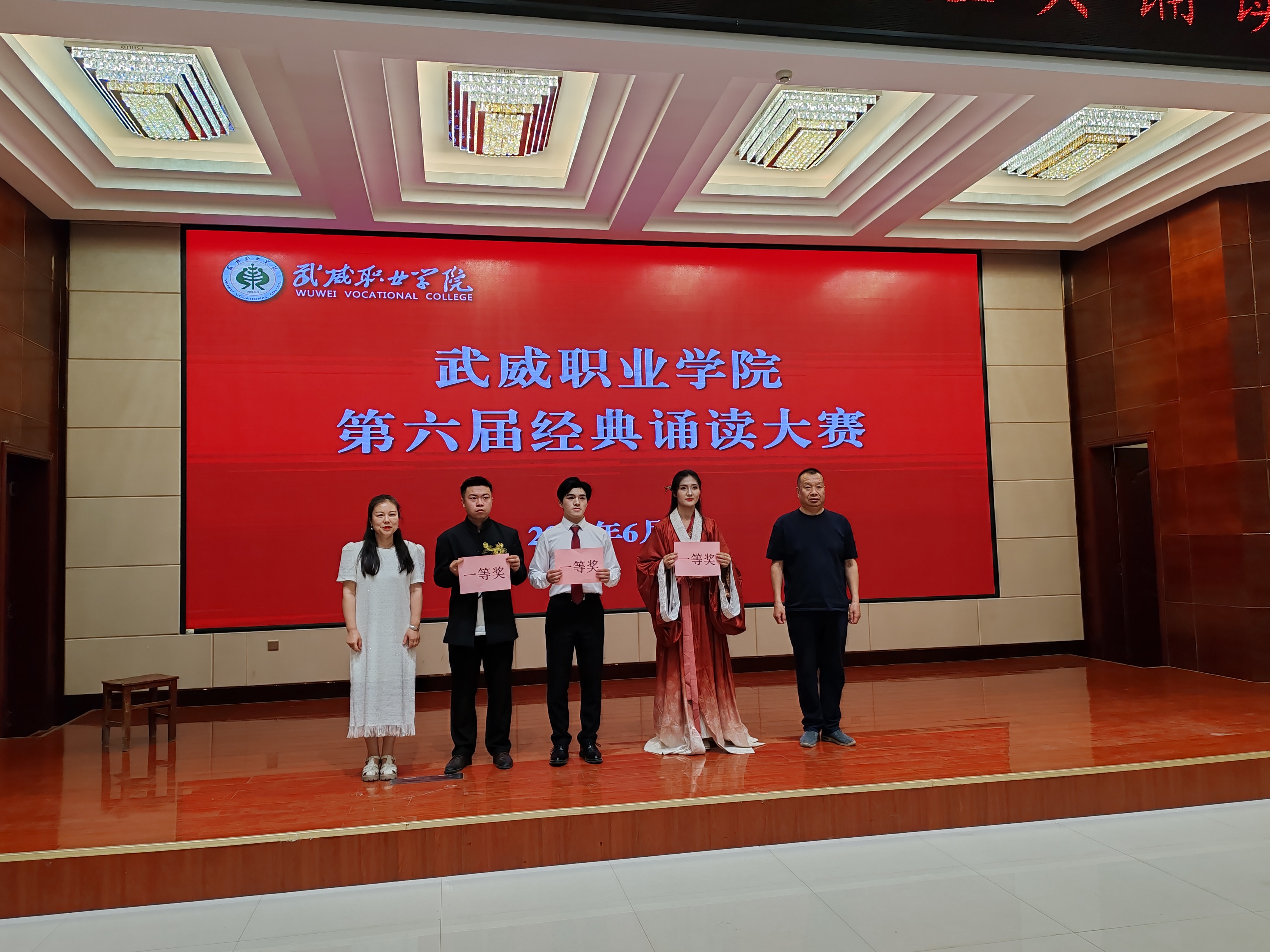 為深化全民閱讀活動開展,引領社會大眾親近中華經典,傳承弘揚中華優(yōu)秀文化,齊心共書強國新篇章,武威職業(yè)學院第六屆經典誦讀大賽于6月4日在菁英廳成功舉辦。黨委委員、副校長田迎春,科研處處長蔡柱山出席比賽現(xiàn)場,邀請語言文字專業(yè)5位評委為教師組、學生組、留學生組共20件參賽作品進行現(xiàn)場評分。