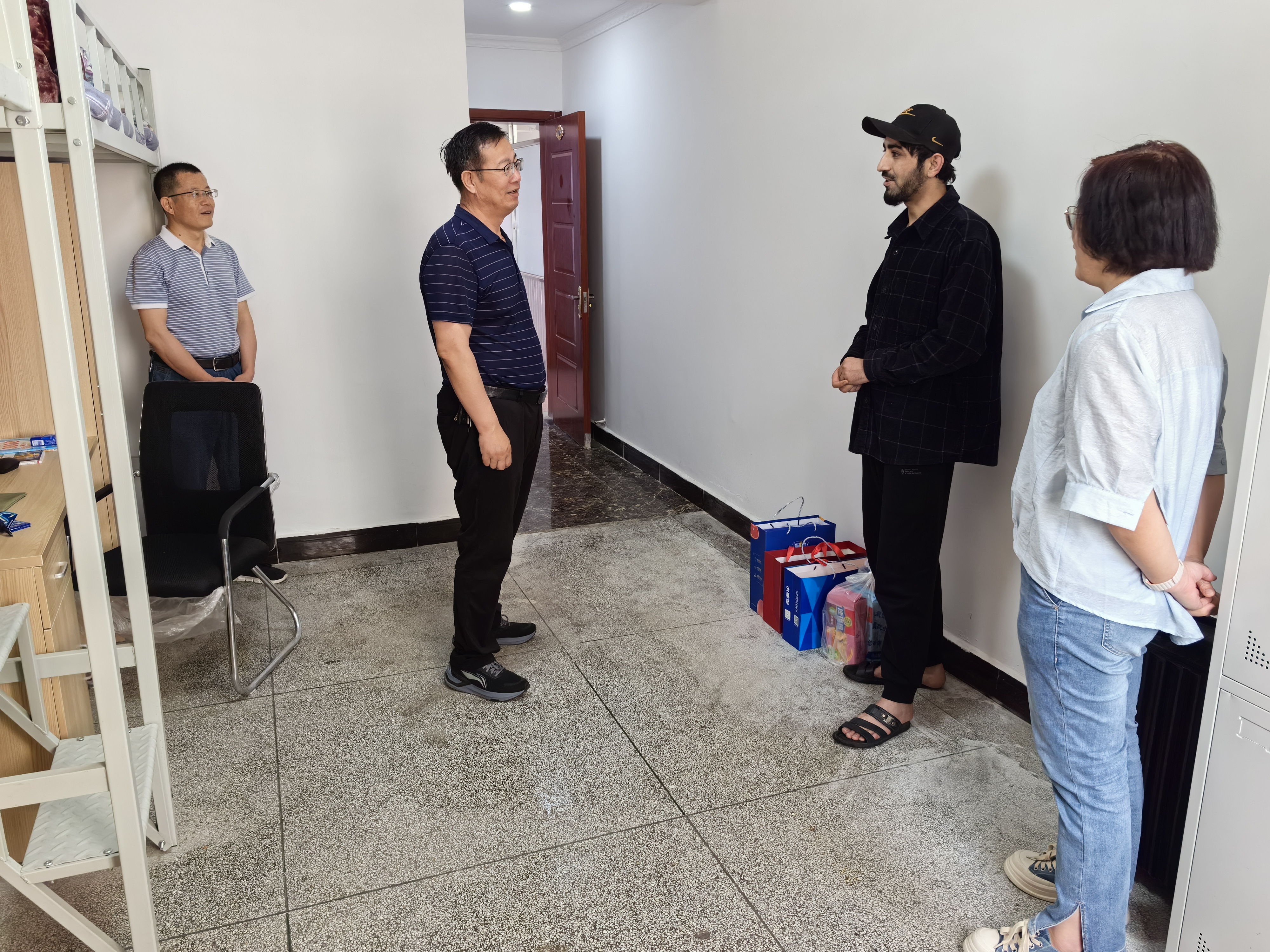 張開禮深入留學(xué)生宿舍、廚房,查看了解留學(xué)生住宿、生活情況,并代表學(xué)校黨委向留學(xué)生表達了節(jié)日的慰問和良好的祝愿,向留學(xué)生送上慰問品。在留學(xué)生公寓,張開禮與留學(xué)生親切交談,關(guān)切詢問留學(xué)生日常生活、專業(yè)學(xué)習(xí)、課程實訓(xùn)、畢業(yè)就業(yè)等情況。他鼓勵留學(xué)生們努力學(xué)習(xí),養(yǎng)成良好生活習(xí)慣,遵守公寓管理規(guī)則和安全條例,保持良好生活環(huán)境,同時也提醒留學(xué)生們端午節(jié)放假期間,不論是外出還是在校,都要注意安全,遵守法律法規(guī)和校紀(jì)校規(guī)。