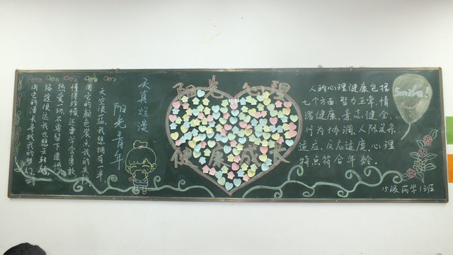 為了迎接評比,各班都做了充分的準備,認真學(xué)習了解大學(xué)生心理健康日相關(guān)知識,精心構(gòu)思了板報主題內(nèi)容,從心理健康輔導(dǎo)、心理健康實例等方面為出發(fā)點,以完善自我心理健康為關(guān)鍵點,充分運用了繪畫、故事等素材,從多方面介紹了心理健康的核心與重要性。最后,15級藥學(xué)1班《陽光心理》和15級藥學(xué)2班的《心靈診所》贏得了一致好評,14級藥學(xué)2班《健康你我》清新可愛的畫風,也頗受大家的喜愛。