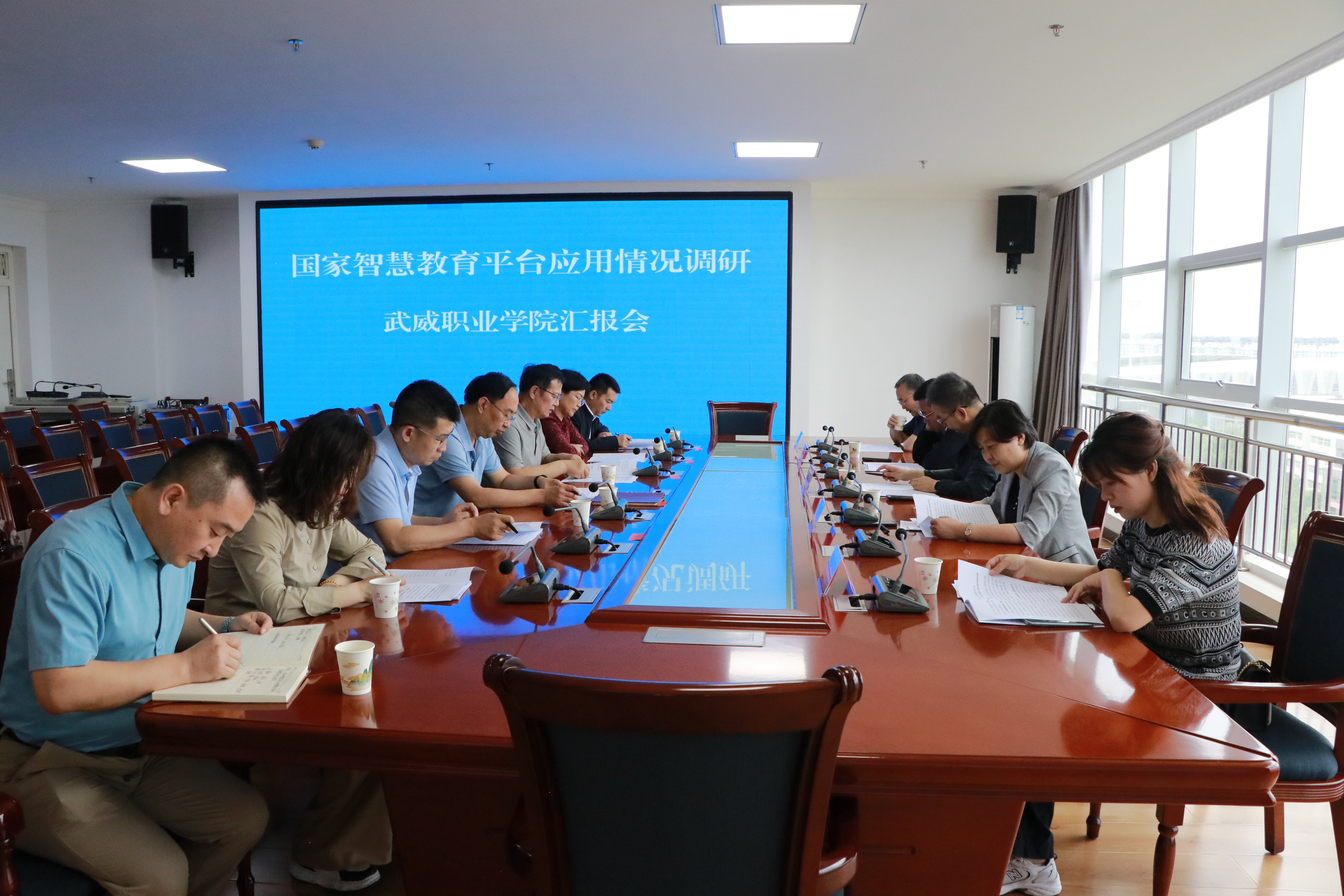6月20日,甘肅省電化教育中心黨支部書記、主任梁翔一行來學校調(diào)研國家智慧教育平臺應(yīng)用情況。武威市教育局黨組書記、局長王娟,學校黨委書記王宏,校長、黨委副書記張開禮,學校黨委委員、副校長何毅陪同調(diào)研。教務(wù)處和網(wǎng)絡(luò)安全與信息技術(shù)中心負責人參會。