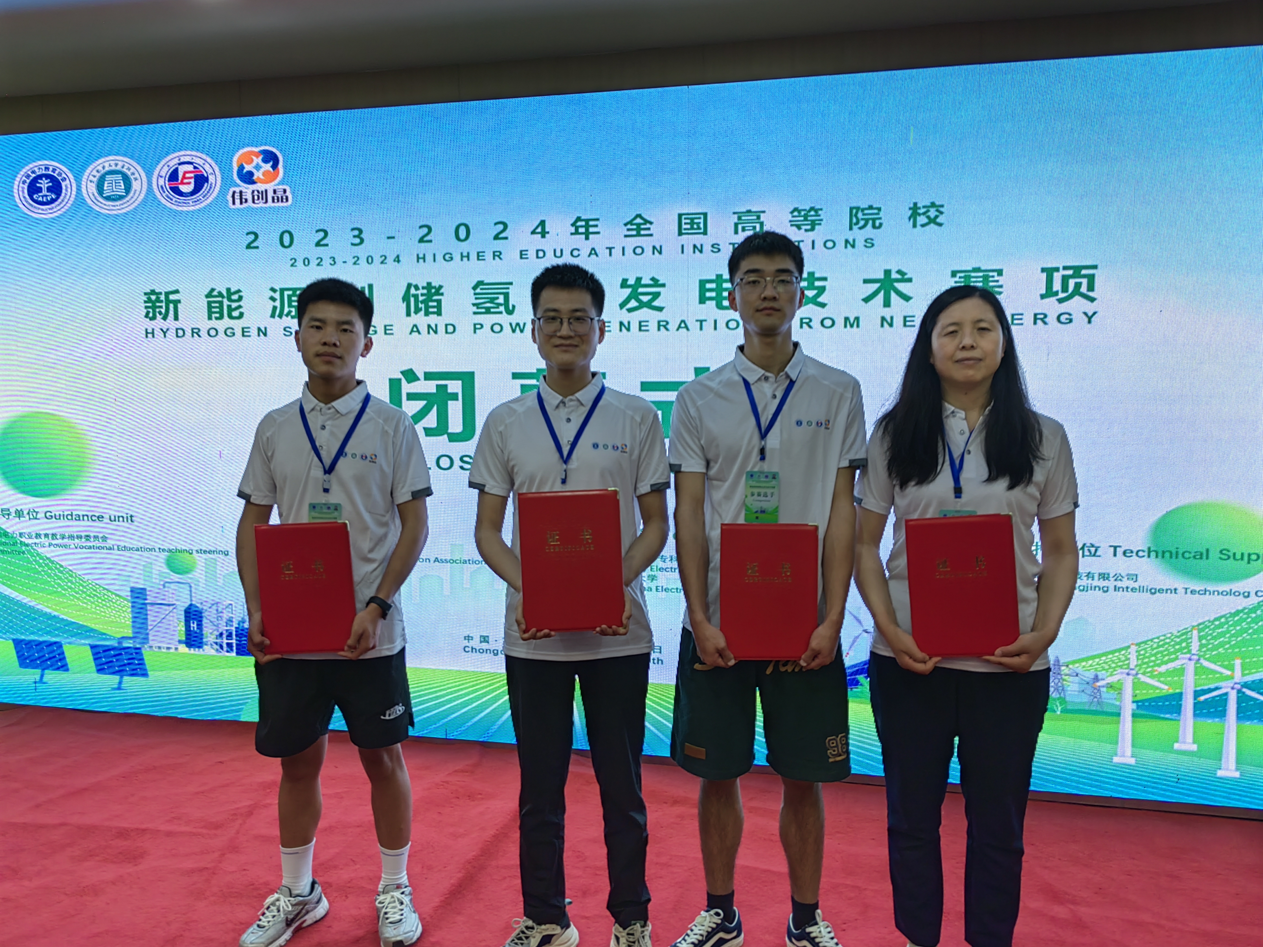 5月17日,全國首屆高等學校新能源制儲氫及發(fā)電技術競賽在重慶電力高等??茖W校舉行,本次大賽由全國電力職業(yè)教育教學指導委員會指導,中國電力教育協(xié)會主辦,華北電力大學、重慶電力高等??茖W校承辦。全國有22個省市48所高校108支隊伍參賽。參賽采用1名教師和1名學生師生聯賽方式進行。我校中科低碳新能源技術學院教師王續(xù)峰和學生王智組成的參賽1隊榮獲全國二等獎,教師黃菊梅和學生董杰組成的參賽2隊榮獲全國三等獎。