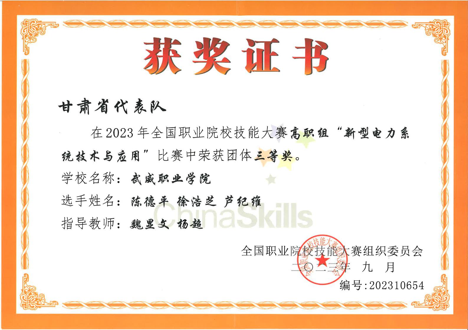 2023年全國職業(yè)院校技能大賽新型電力系統(tǒng)技術(shù)與應(yīng)用賽項(xiàng)三等獎(jiǎng)