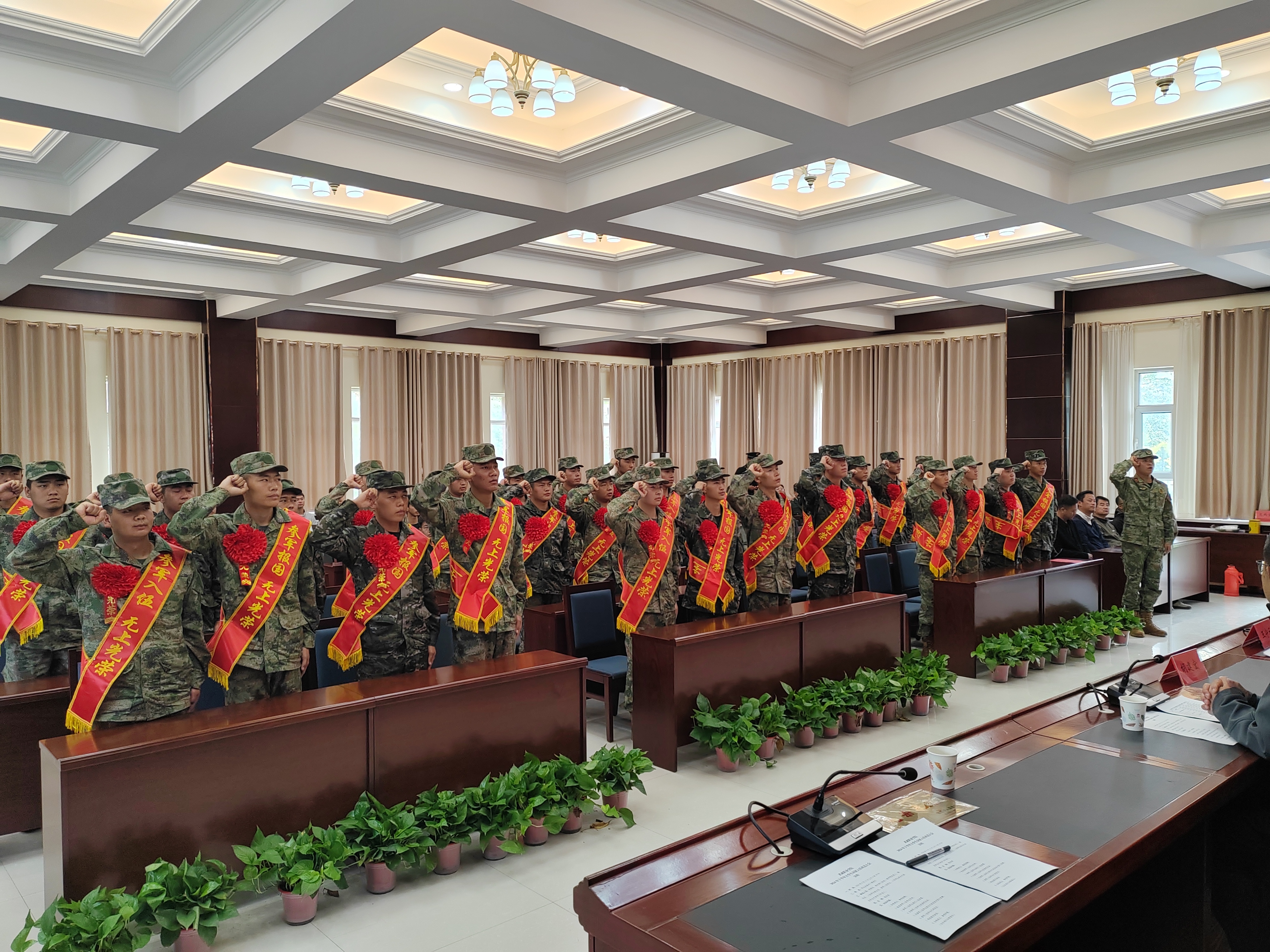 歡送大會上,入伍學生在退伍復學大學生代表的帶領(lǐng)下進行了鏗鏘有力的入伍宣誓,參會領(lǐng)導向?qū)W校所在地入伍的30名新兵佩戴大紅花并贈送紀念品,為入伍學生家長代表頒發(fā)“光榮之家”光榮牌。
