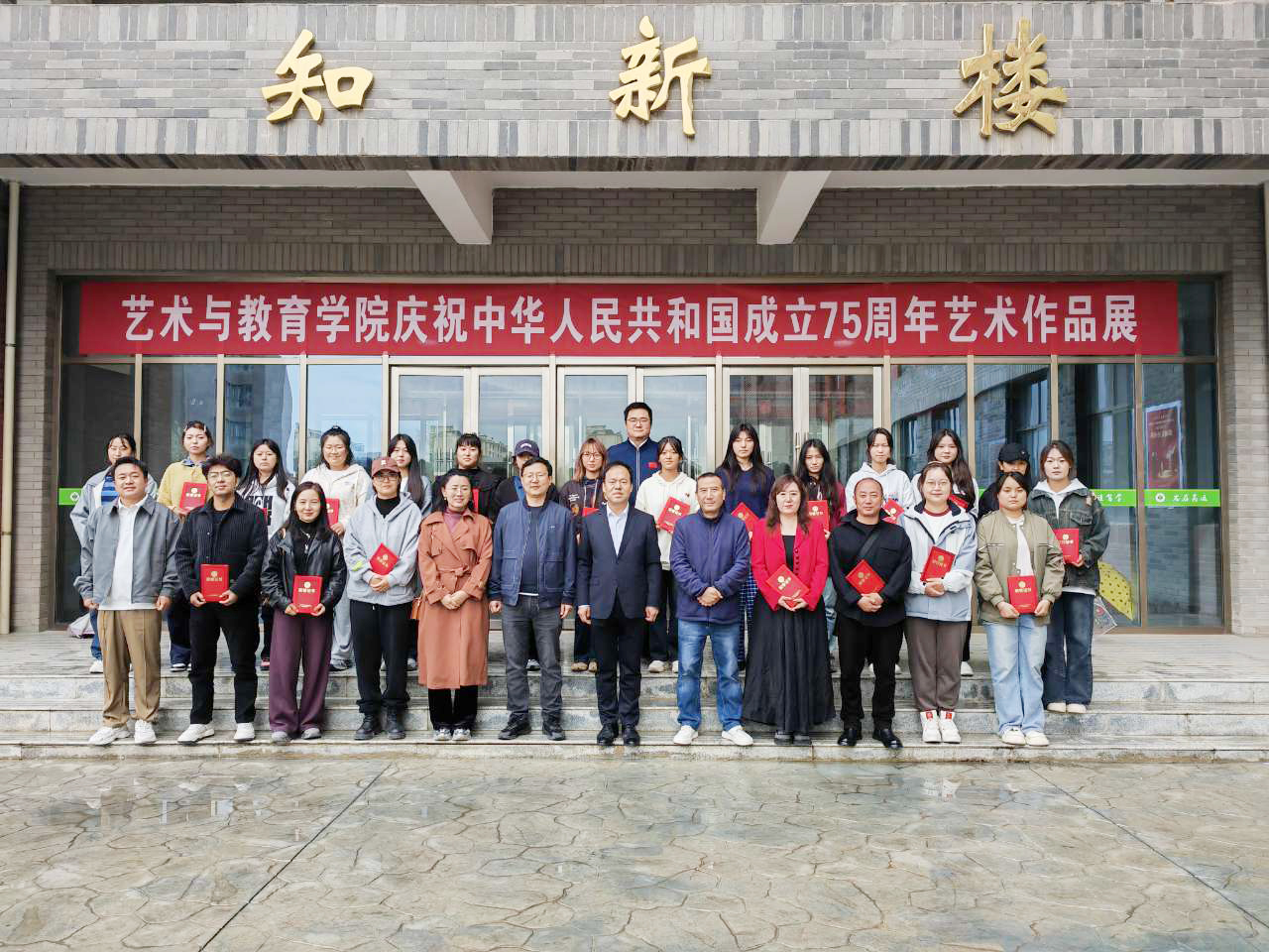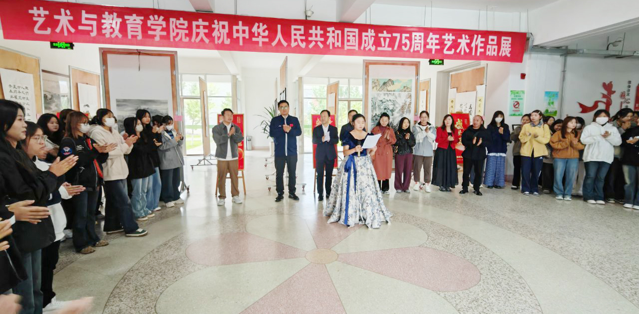 9月30日上午,藝術(shù)與教育學(xué)院慶祝新中國成立75周年藝術(shù)作品展在知新樓開幕。學(xué)院黨總支書記王政、副院長蘆小鵬,美術(shù)教研室全體教師及學(xué)生代表參加了開幕式。