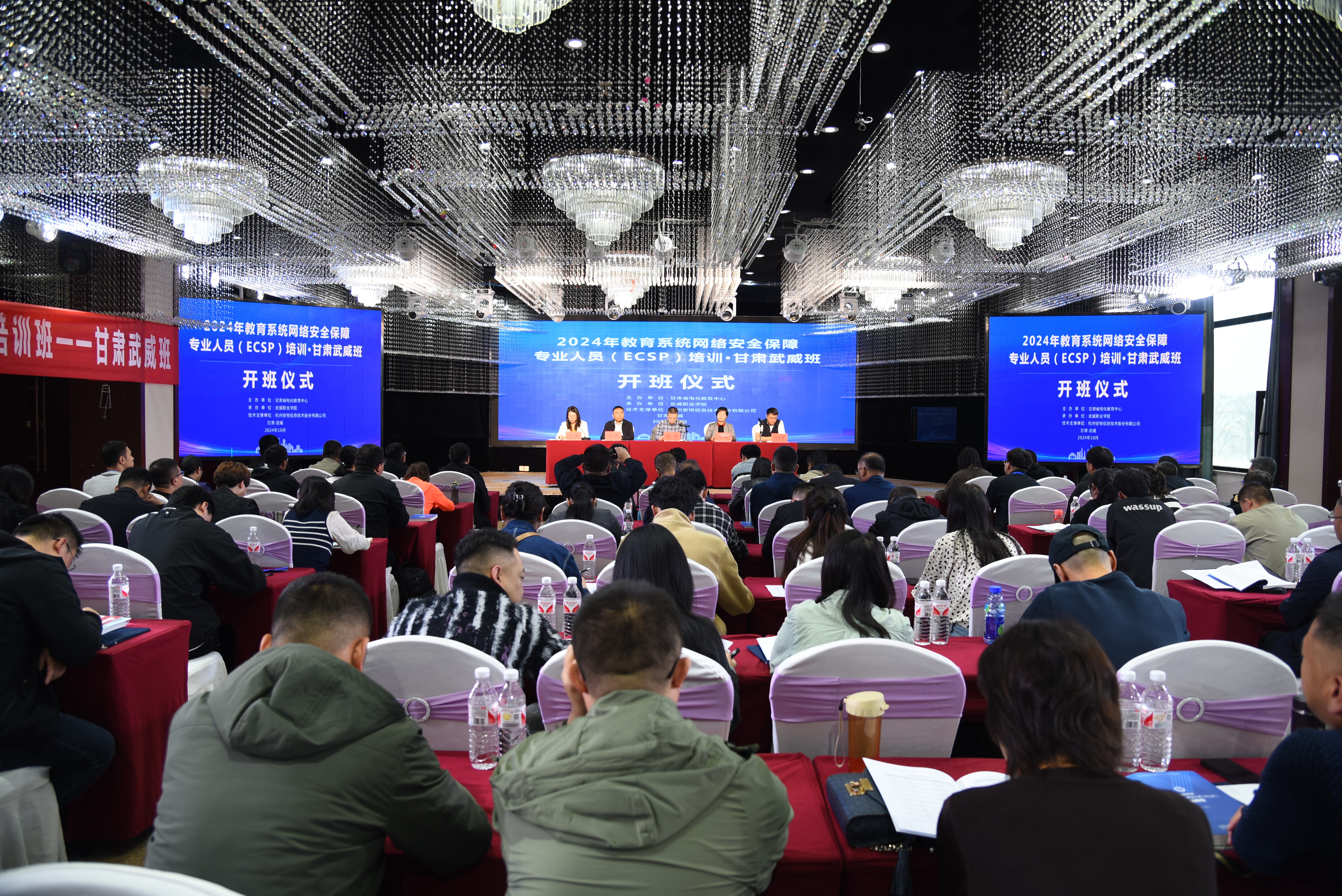 2024年10月15日,由甘肅省電化教育中心主辦,我校承辦的教育部2024年教育系統(tǒng)網(wǎng)絡(luò)安全保障專業(yè)人員(ECSP)培訓(xùn)班順利開班,來自省內(nèi)外各級教育行政部門及其直屬單位、高等院校和其他教育機構(gòu)的90余名網(wǎng)絡(luò)安全和信息化從業(yè)人員參加培訓(xùn)。甘肅省電化教育中心主任梁翔,學(xué)校黨委委員、副校長何毅出席開班式,甘肅省電化教育中心科長伏蓉主持開班式。