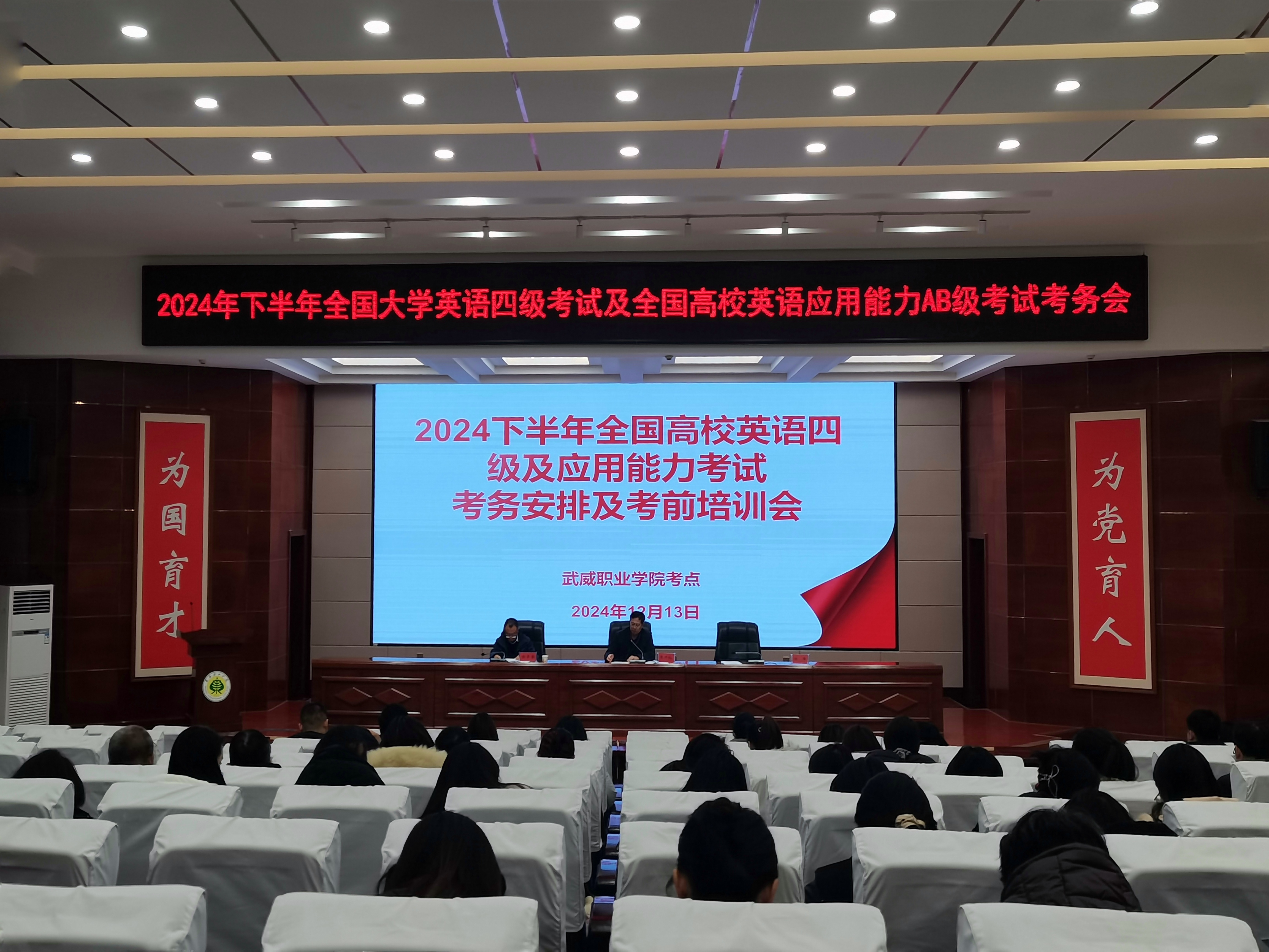 12月13日下午,在菁英廳召開了全國大學(xué)生英語四級暨全國高校英語應(yīng)用能力AB級考試的考務(wù)安排及考前培訓(xùn)會議。會上,黨委副書記、副校長張開禮強(qiáng)調(diào)了考試紀(jì)律的重要性,要求所有監(jiān)考人員和考生嚴(yán)格遵守考試規(guī)定,確??荚嚨墓健⒐晚樌M(jìn)行。培訓(xùn)考試中心主任顏魯薪就考試的各項(xiàng)具體事宜進(jìn)行了詳細(xì)安排,包括考試流程、考場布置、試卷分發(fā)與回收等環(huán)節(jié),確保考試工作的有序進(jìn)行。