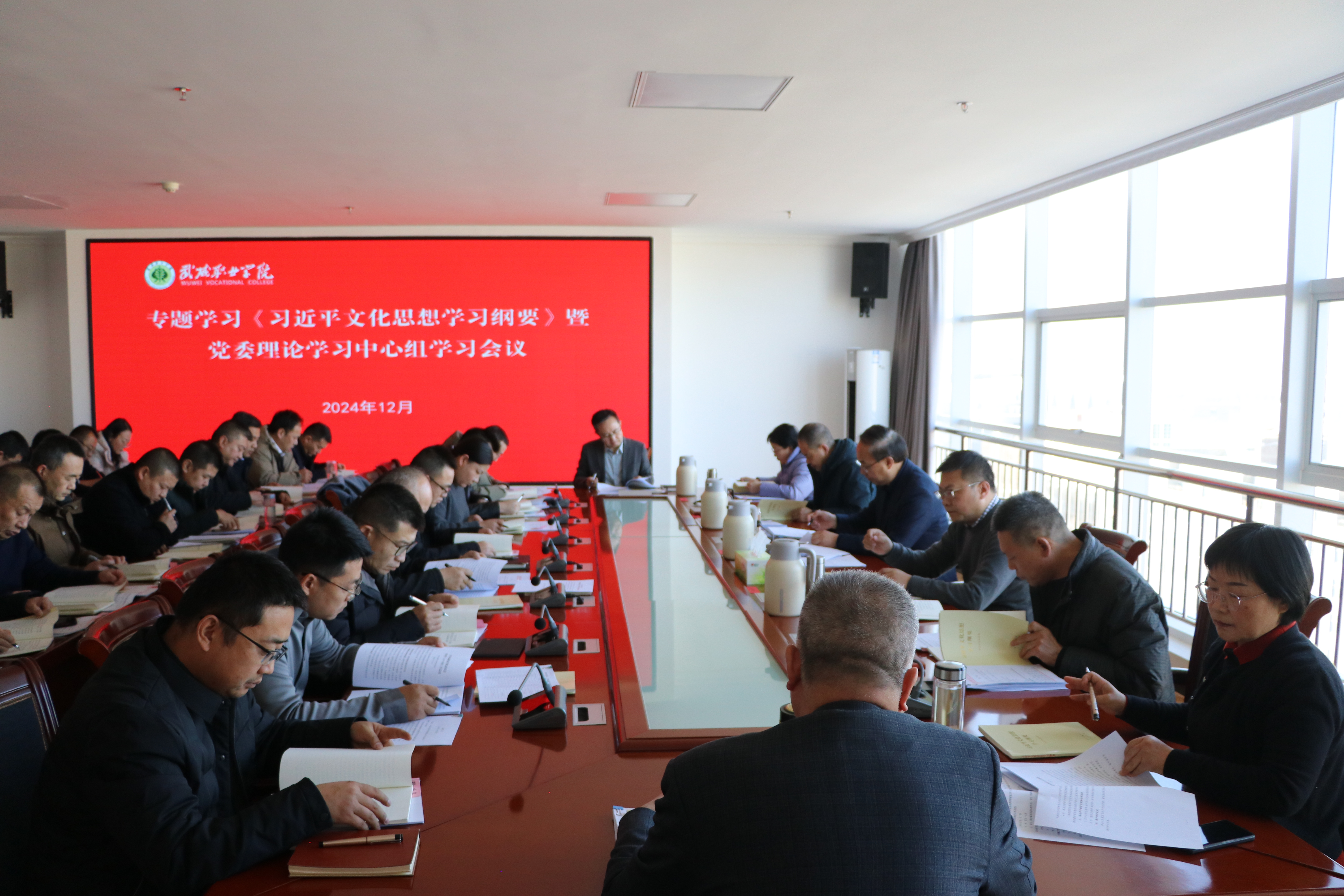 12月20日下午,學(xué)校召開《習(xí)近平文化思想學(xué)習(xí)綱要》專題學(xué)習(xí)暨黨委理論學(xué)習(xí)中心組學(xué)習(xí)會(huì)議。學(xué)校領(lǐng)導(dǎo),各部門、二級(jí)學(xué)院主要負(fù)責(zé)人,各黨總支與直屬黨支部書記參加會(huì)議。黨委書記王宏主持會(huì)議并講話。