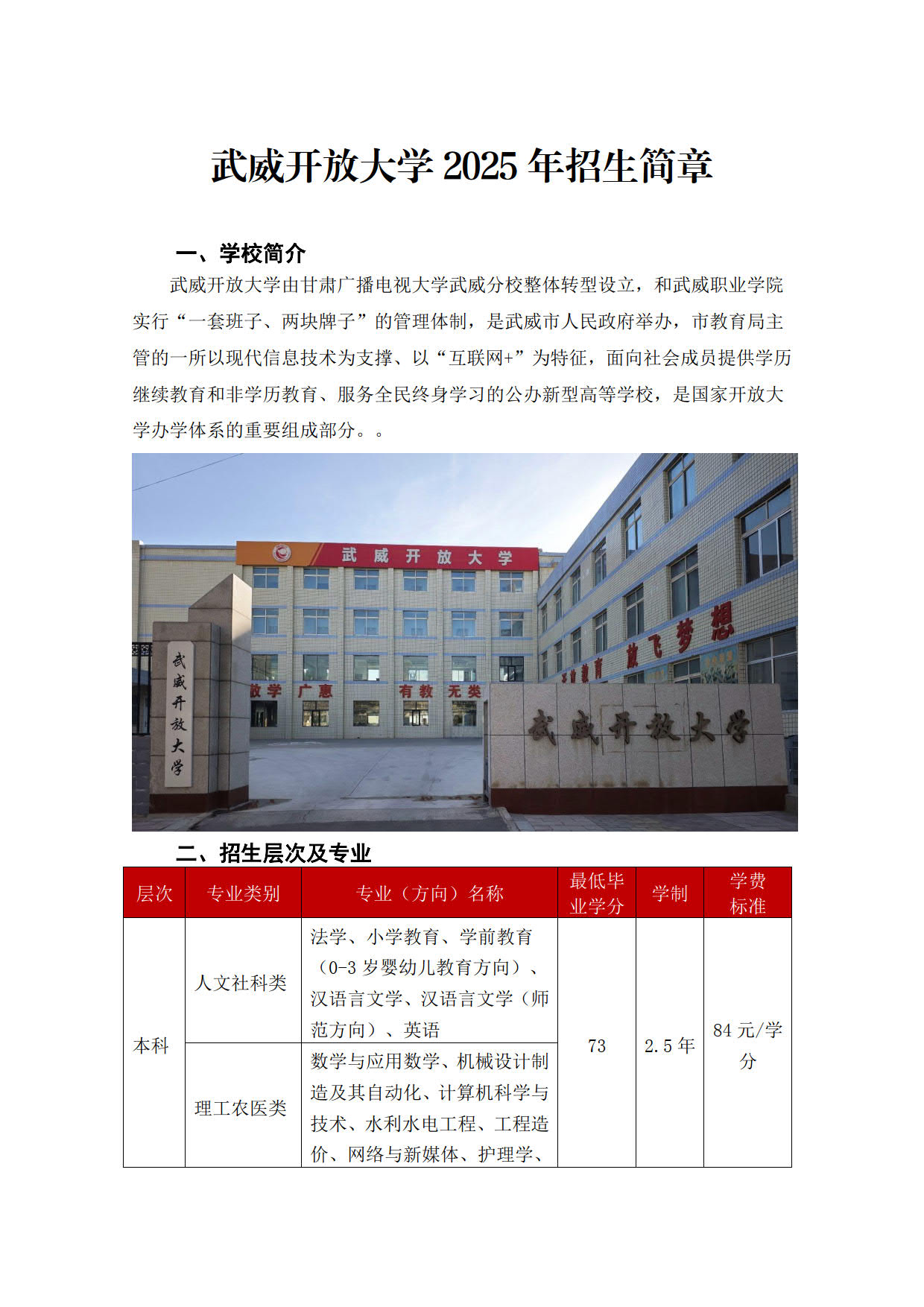 武威開放大學2025年招生簡章