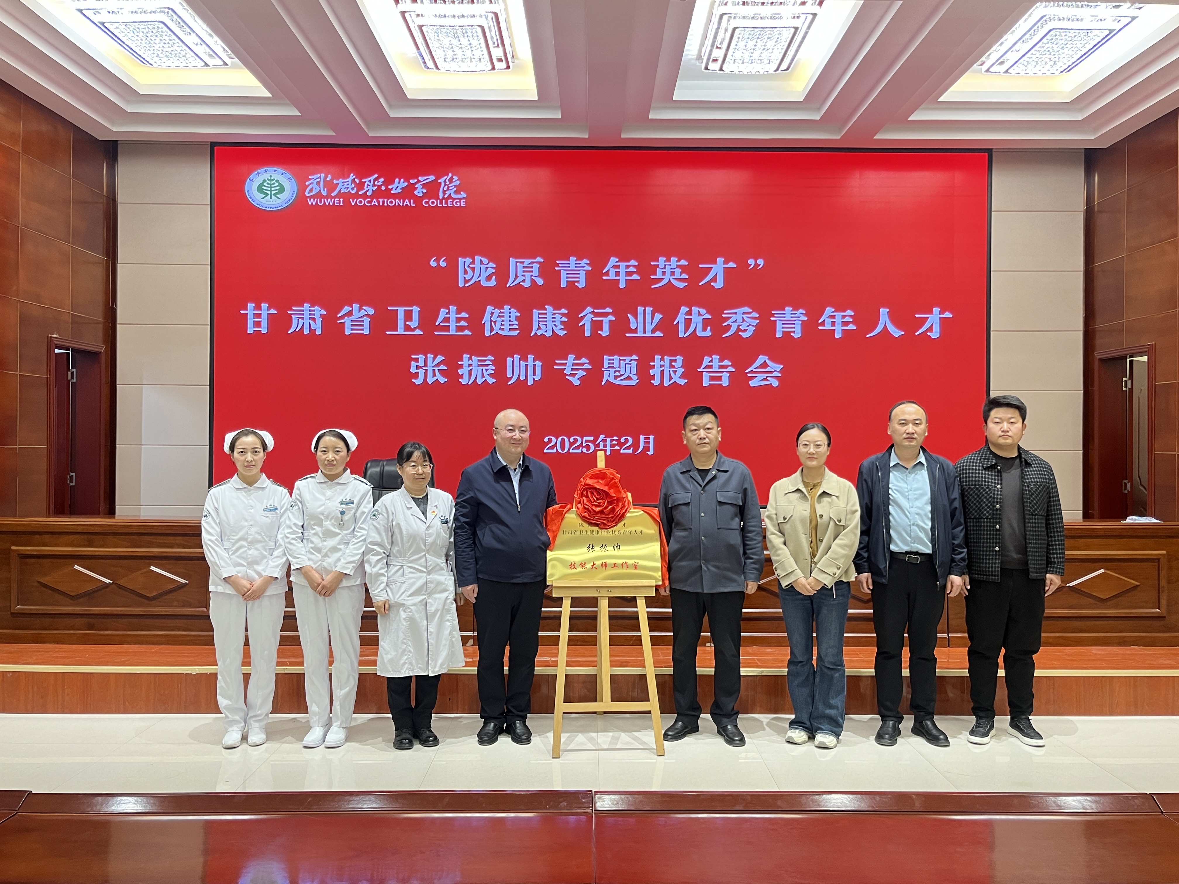 2月27日,“隴原青年英才”、甘肅省衛(wèi)生健康行業(yè)優(yōu)秀青年人才張振帥技能大師工作室揭牌儀式暨專題報告會在武威職業(yè)學院菁英廳隆重舉行。藥學院副院長馬琪主持報告會,200余名師生代表參會,旨在傳承中醫(yī)藥文化,發(fā)揮技能大師引領作用,培育高素質(zhì)中醫(yī)藥技能人才。