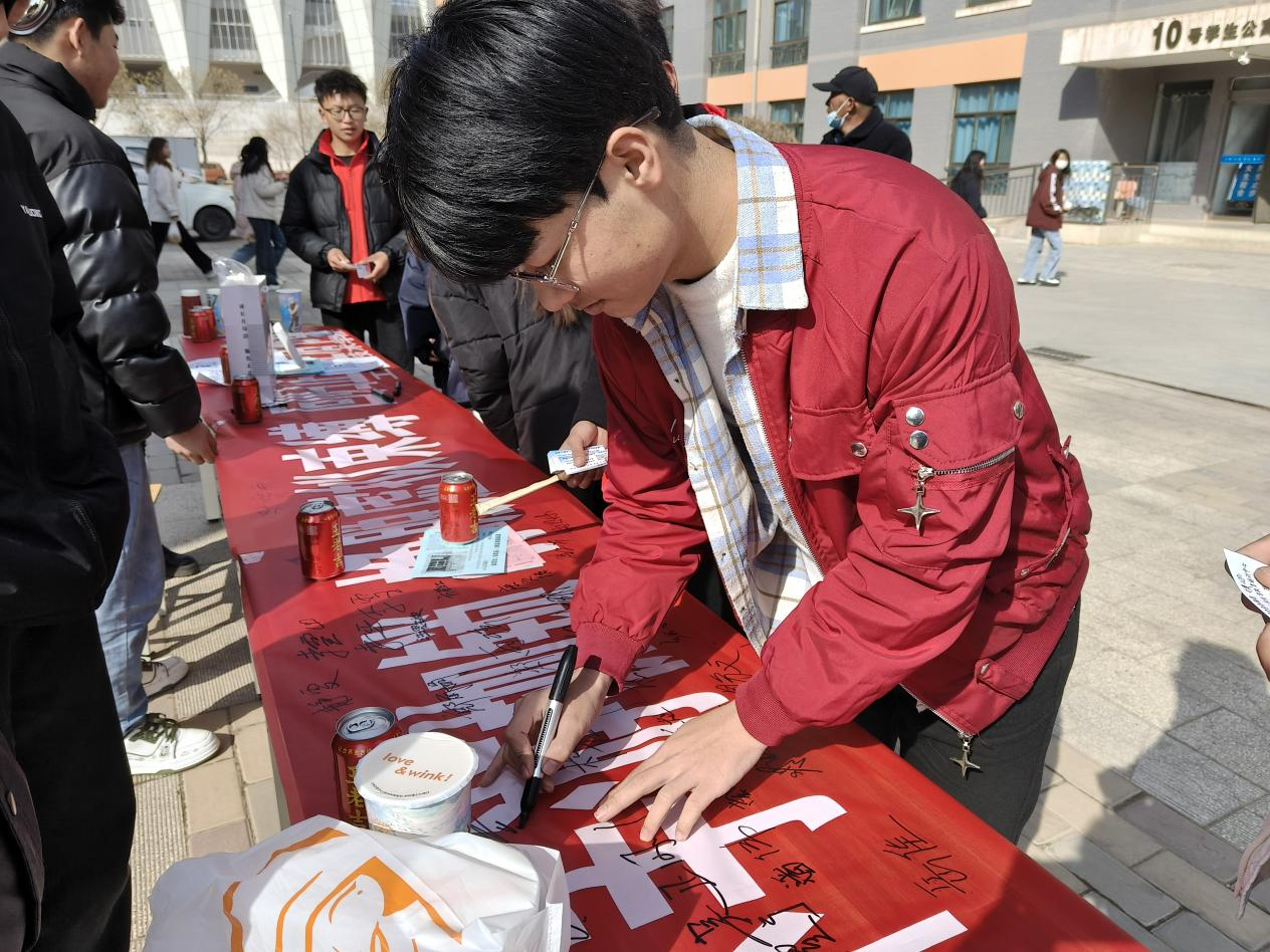 活動現(xiàn)場,醒目的宣傳展板展示了過度使用手機對身心健康造成的負面影響,從視力下降、睡眠紊亂到社交能力退化等問題,引發(fā)過往學生駐足思考。志愿者熱情地向同學們介紹活動意義,鼓勵大家在橫幅上簽字承諾,暫時放下手機,去感受真實生活的美好。許多同學紛紛響應,簽下自己的名字,用實際行動表達對健康生活方式的支持。