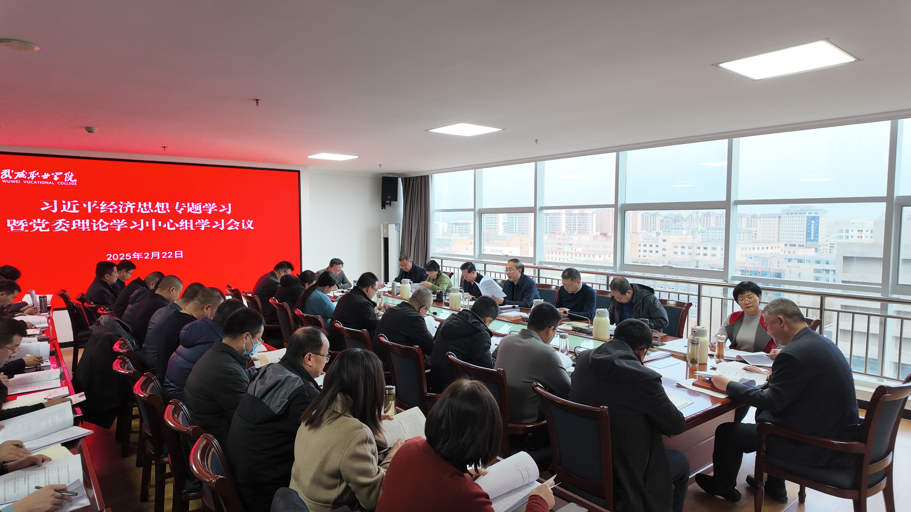 2月22日,學校召開黨委理論學習中心組學習會議,專題學習研討習近平經濟思想。校黨委理論學習中心組成員參加,校長李海軍,各部門、二級學院主要負責人列席。黨委書記王宏主持會議并講話。