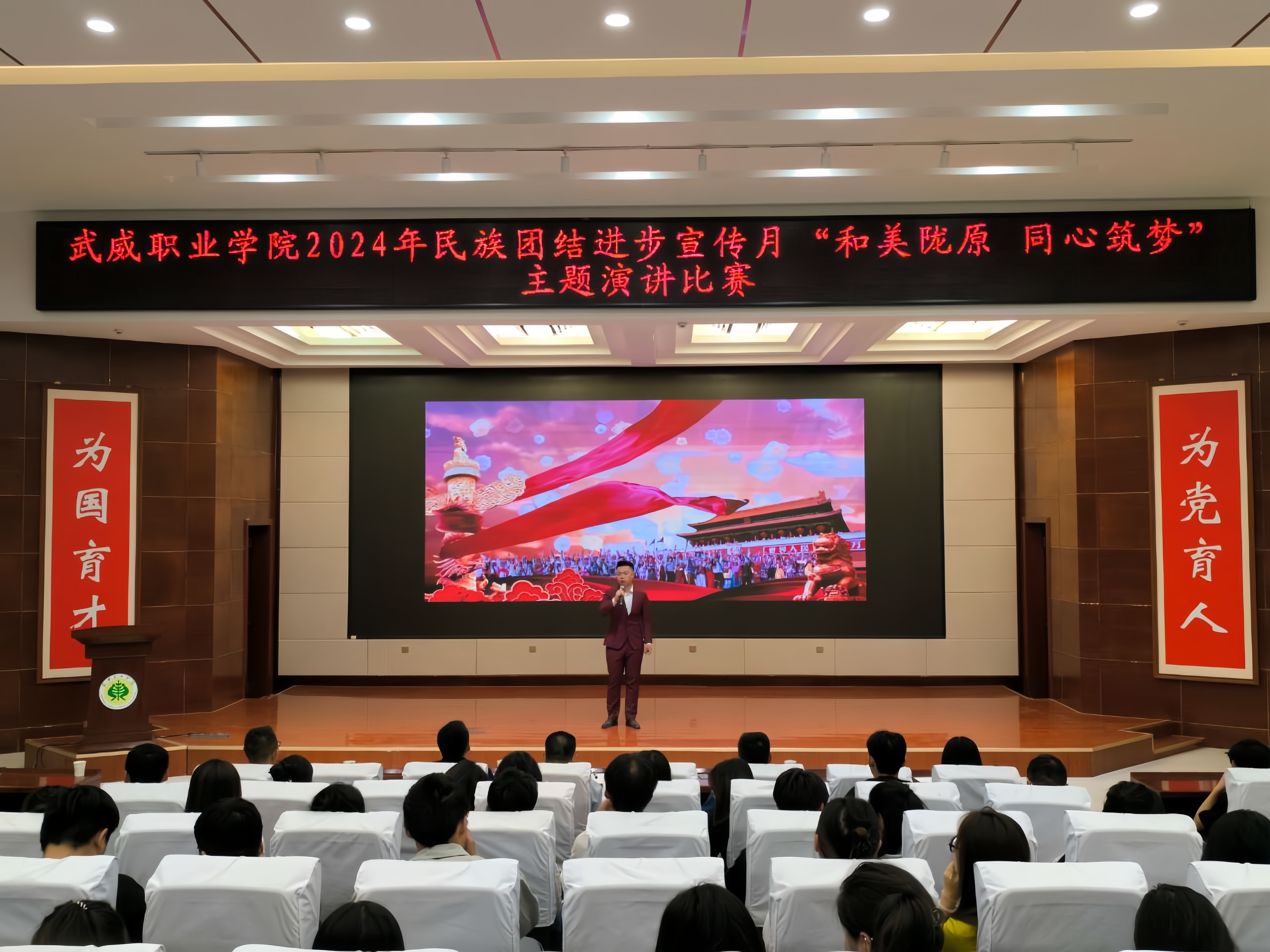 為持續(xù)深化民族團(tuán)結(jié)進(jìn)步教育,進(jìn)一步引導(dǎo)各族師生牢固樹(shù)立“四個(gè)與共”的共同體理念。學(xué)校于5月30日晚在學(xué)生發(fā)展中心菁英廳舉辦了“和美隴原 同心筑夢(mèng)”主題演講比賽。200余名師生參加活動(dòng)。