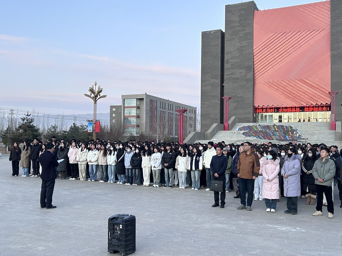 ? 2025年3月10日,醫(yī)學(xué)技術(shù)學(xué)院在學(xué)校圖書館東廣場(chǎng)舉行新學(xué)期升國旗儀式,全體輔導(dǎo)員、班主任及在校學(xué)生參加。? ? ?