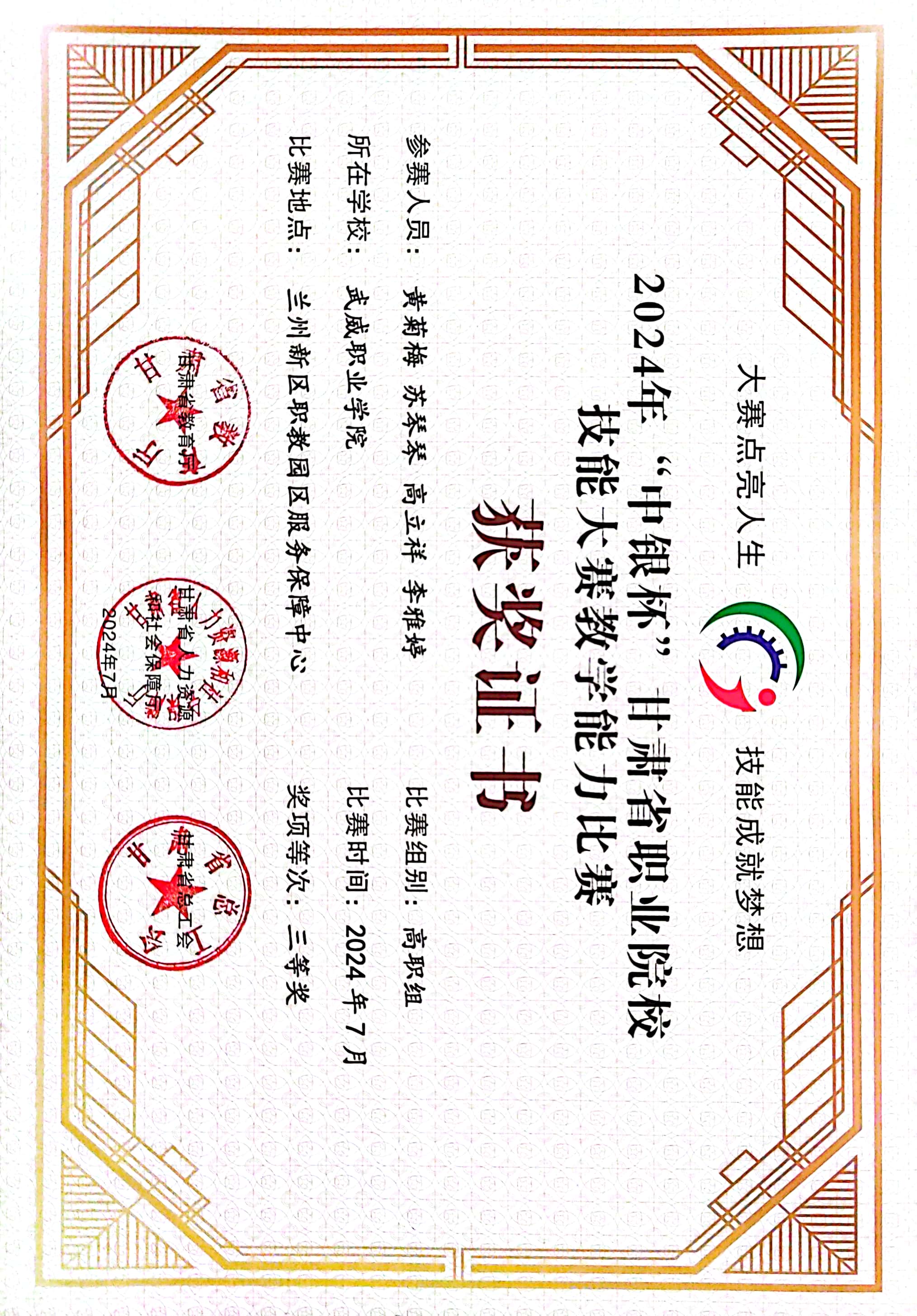 2024年甘肅省職業(yè)院校技能大賽教學(xué)能力比賽獲獎(jiǎng)情況
