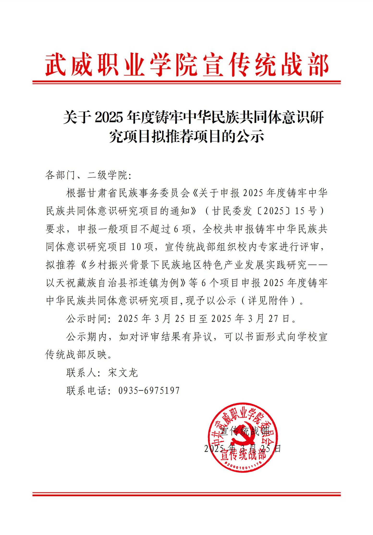 關(guān)于2025年鑄牢中華民族共同體意識宣傳教育專項研究課題擬推薦項目的公示