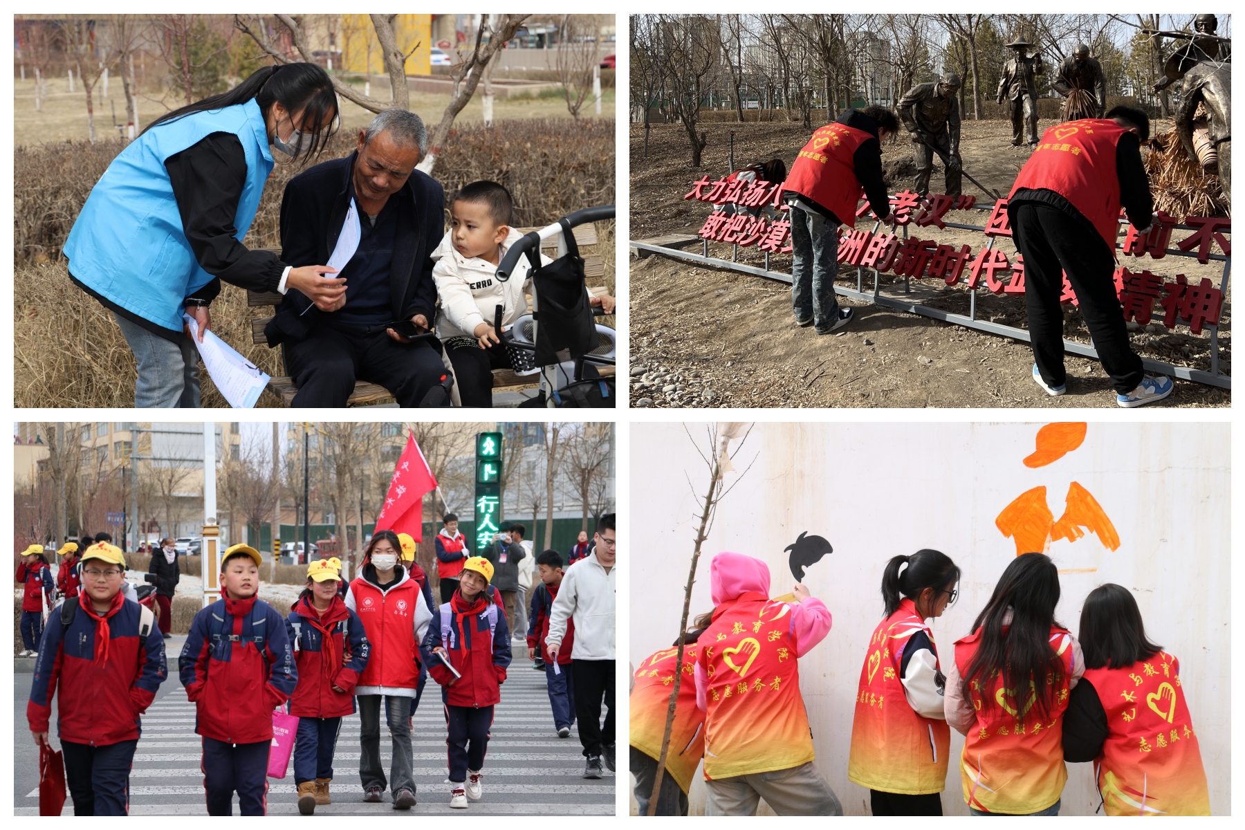 開展青春社區(qū)志愿服務活動。3月4日,護理學院組織15名志愿者前往西關街社區(qū)開展“保護環(huán)境,建設美麗社區(qū)”志愿服務活動,活動中志愿者們手持清潔工具,鏟除墻面小廣告,倡導綠色環(huán)保生活理念,引導市民共同守護美好家園。3月9日,現(xiàn)代農業(yè)學院組織志愿者前往海藏公園開展“公園環(huán)保行動派”志愿服務活動,清理雜草雜物,向過往群眾宣傳垃圾分類知識。3月6日,中科低碳新能源技術學院志愿者在學校周邊十字路口開展文明交通勸導活動,向行人普及交通安全知識、提醒遵守交通信號燈,向騎行者強調佩戴安全頭盔、不逆行、不闖紅燈的重要性,組成護學小分隊引導周邊小學的同學有序通過馬路等。3月29日,藝術與教育學院學前教育專業(yè)20余名志愿者前往富鑫源社區(qū)化身“社區(qū)美育師”,與甘肅十二元素傳媒有限公司設計師共同完成了“鄰里和諧”主題墻繪。