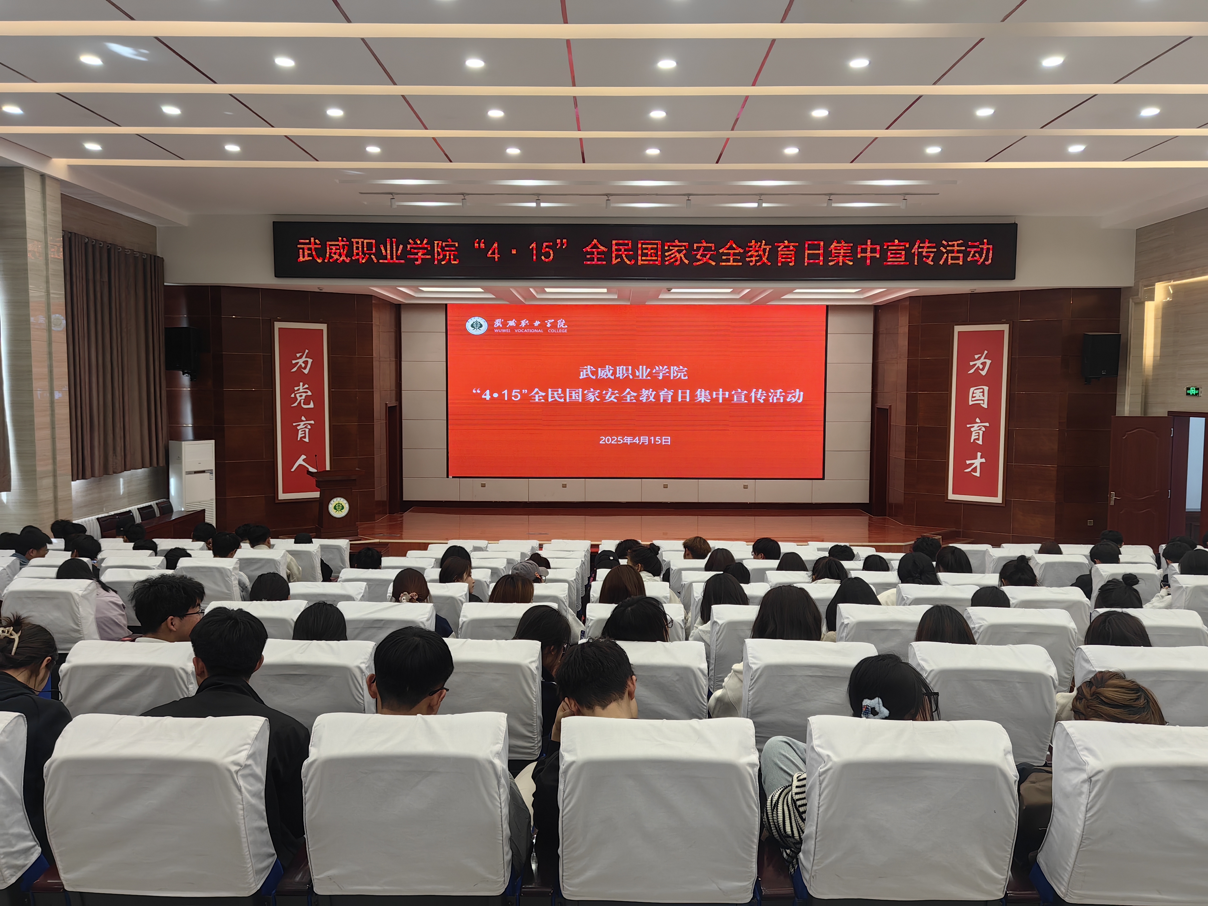 4月15日下午,學校在學生發(fā)展中心菁英廳舉行了“4·15全民國家安全教育日”集中宣傳教育活動,各二級學院師生代表200余人參加。活動現(xiàn)場,安全保衛(wèi)處共發(fā)出宣傳彩頁1500余份,組織師生代表共同收看了由教育部錄制播出的“千萬師生同上一堂國家安全教育課”,觀看了國家安全教育宣傳展板,掃描關(guān)注了“國家安全部”、“中國反邪教”、領(lǐng)事直通車等公眾號,并學習了相關(guān)國家安全法規(guī)內(nèi)容。