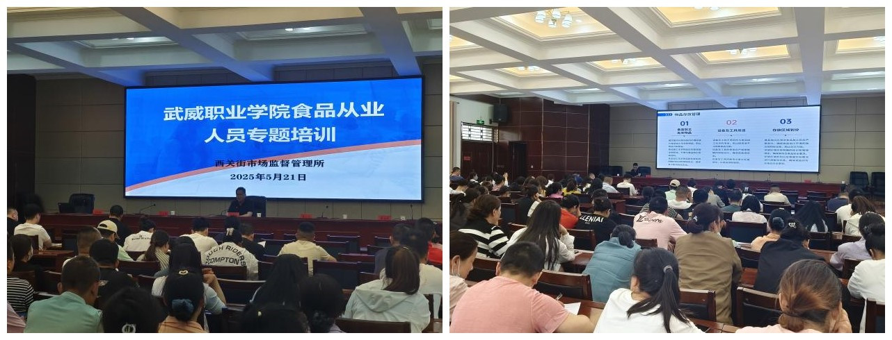 5月21日下午,學(xué)校邀請(qǐng)涼州區(qū)市場(chǎng)監(jiān)管局副局長汪大勇、西關(guān)街市場(chǎng)監(jiān)督管理所所長秦榮華開展食品安全專題培訓(xùn)。學(xué)生食堂、超市、后勤服務(wù)樓管理人員和全體從業(yè)人員200余人參加培訓(xùn)。培訓(xùn)由后勤管理處處長占發(fā)禹主持。