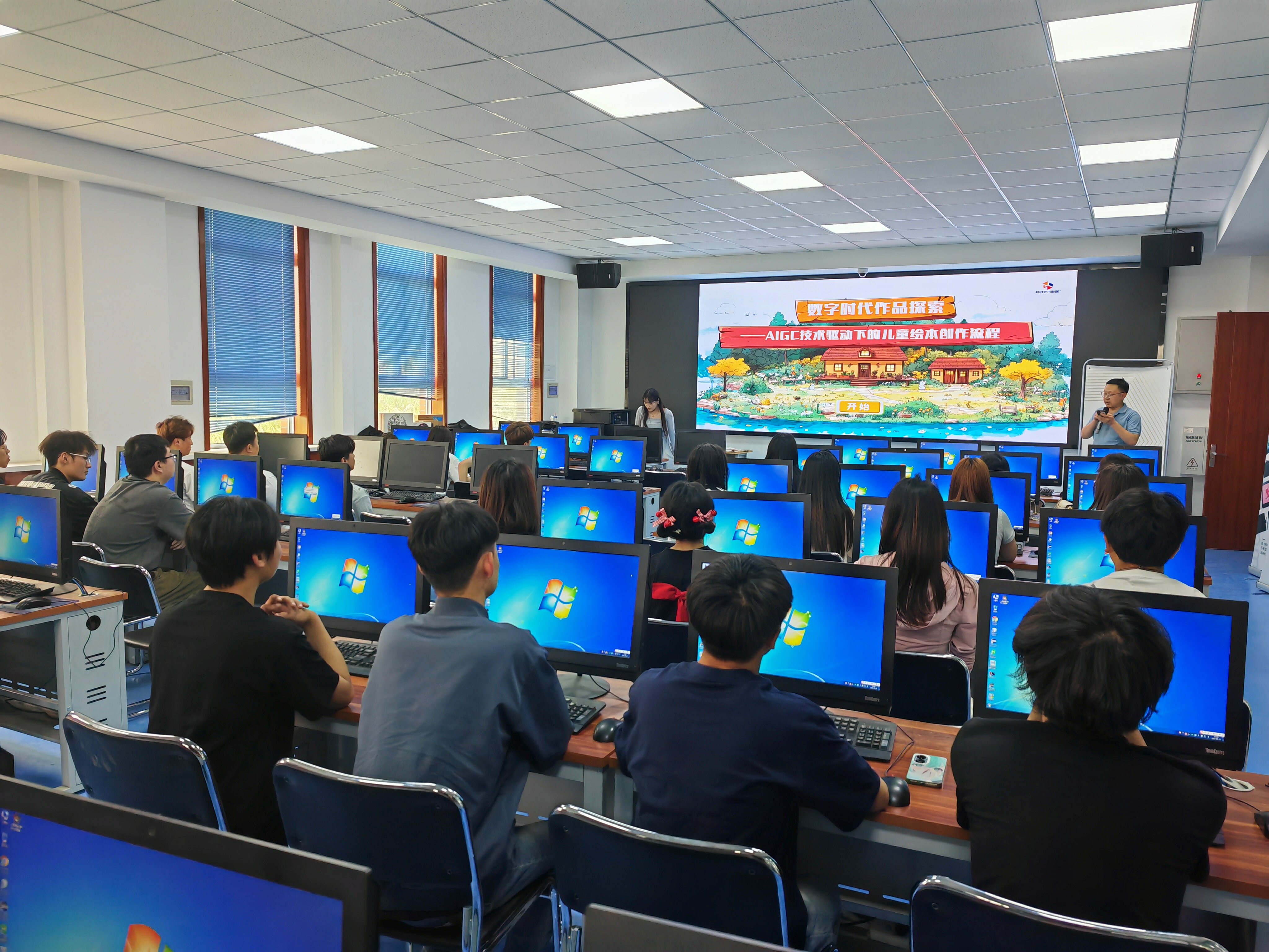 2025年5月28日下午,藝術(shù)與教育學(xué)院在篤行樓3樓10號(hào)機(jī)房舉辦了主題為“數(shù)字時(shí)代作品探索——AIGC技術(shù)驅(qū)動(dòng)下的兒童繪本創(chuàng)作流程革新”的專題講座。本次講座特邀甘肅共創(chuàng)數(shù)媒科技有限公司資深數(shù)字藝術(shù)行業(yè)專家朱佩宇擔(dān)任主講。講座由副院長蘆小鵬主持。