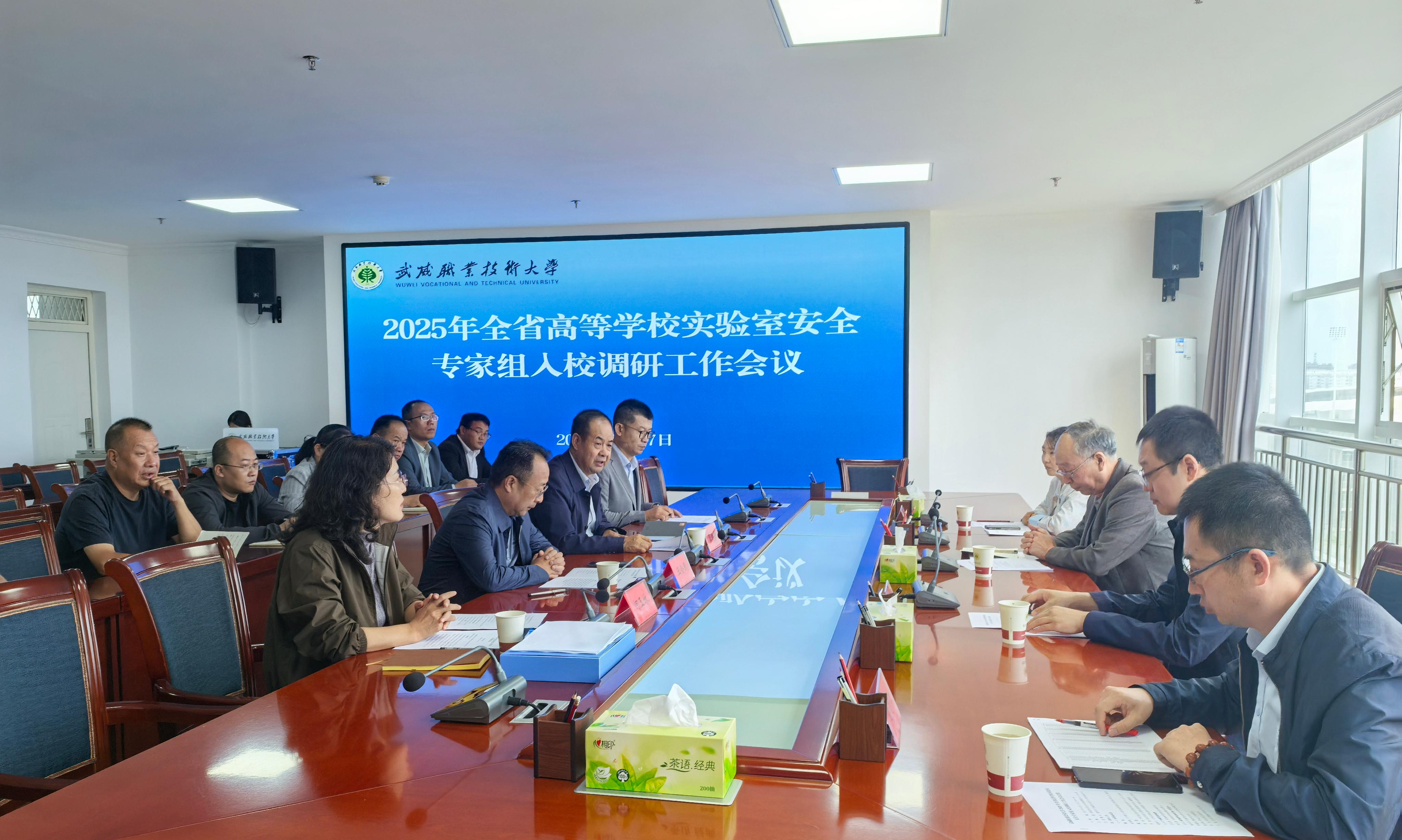 根據(jù)《甘肅省教育廳關(guān)于組織開展2025年高等學(xué)校實驗室安全工作的通知》要求和安排部署,8月27日,省教育廳高校實驗室安全調(diào)研專家組一行蒞臨學(xué)校開展實驗室安全工作調(diào)研。武威市教育局副局長王會民、學(xué)校黨委副書記翟存祥、相關(guān)部門及學(xué)院(部)負責(zé)人參加會議。