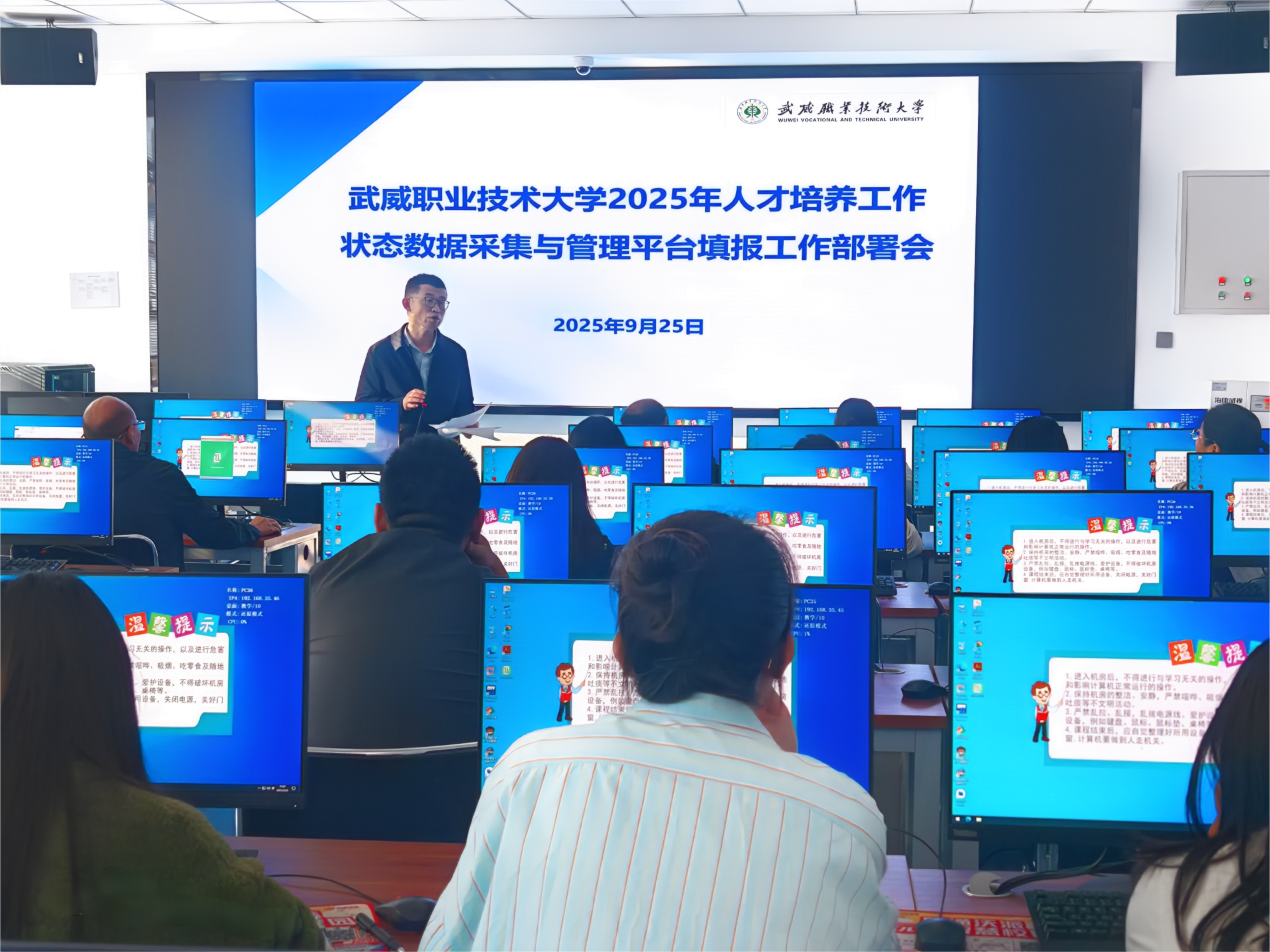 為深入貫徹落實教育部職成司《關(guān)于做好職業(yè)教育2024-2025學(xué)年數(shù)據(jù)采集工作的通知》精神,根據(jù)《甘肅省教育廳關(guān)于開展全省職業(yè)教育2024—2025學(xué)年信息數(shù)據(jù)采集工作的通知》要求,確保學(xué)校2025年人才培養(yǎng)工作狀態(tài)數(shù)據(jù)采集工作高效、有序開展。9月25日,教務(wù)處在篤行樓3樓機房組織召開學(xué)校2025年人才培養(yǎng)工作狀態(tài)數(shù)據(jù)采集工作部署會議。教務(wù)處、各學(xué)院(部)數(shù)據(jù)填報相關(guān)工作人員參加會議。